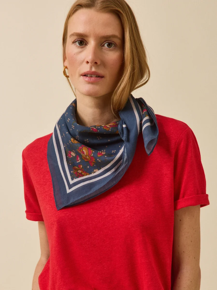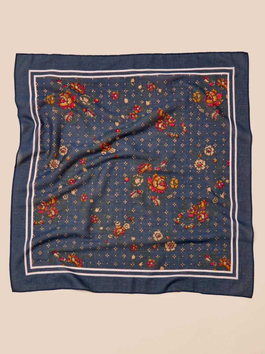 L’imprimé fleurs n’en finit pas de se ré-inventer. Ce foulard le joue tout en chic, en charme et en douceur.