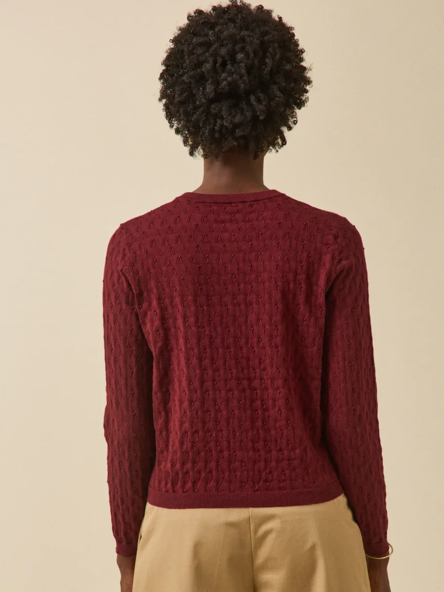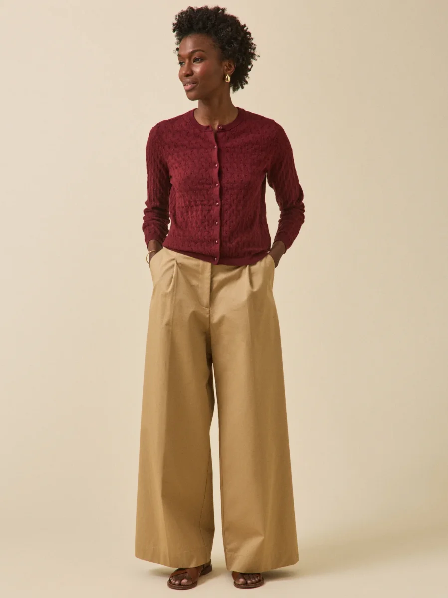 La maille pointelle se réinvente dans une version contemporaine. À porter comme un pull, ce gilet exalte douceur et caractère pour signer une allure féminine d’une grande finesse.