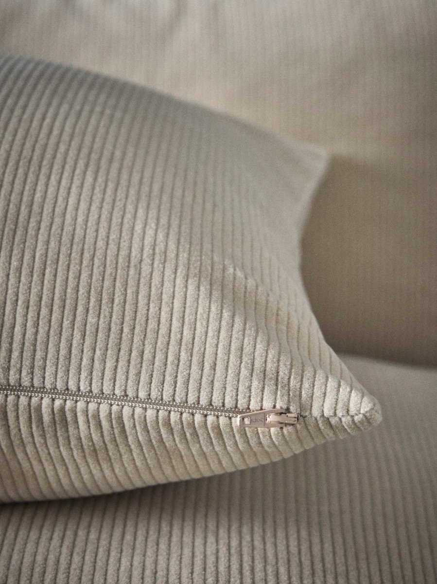 Housse de coussin pur coton en velours côtelé recto/verso. Fermeture par glissière invisible. Existe en plusieurs tailles et différents coloris soigneusement sélectionnés.