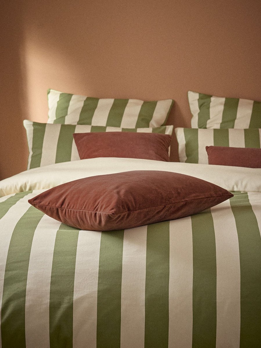 Housse de coussin pur coton en velours côtelé recto/verso. Fermeture par glissière invisible. Existe en plusieurs tailles et différents coloris soigneusement sélectionnés.