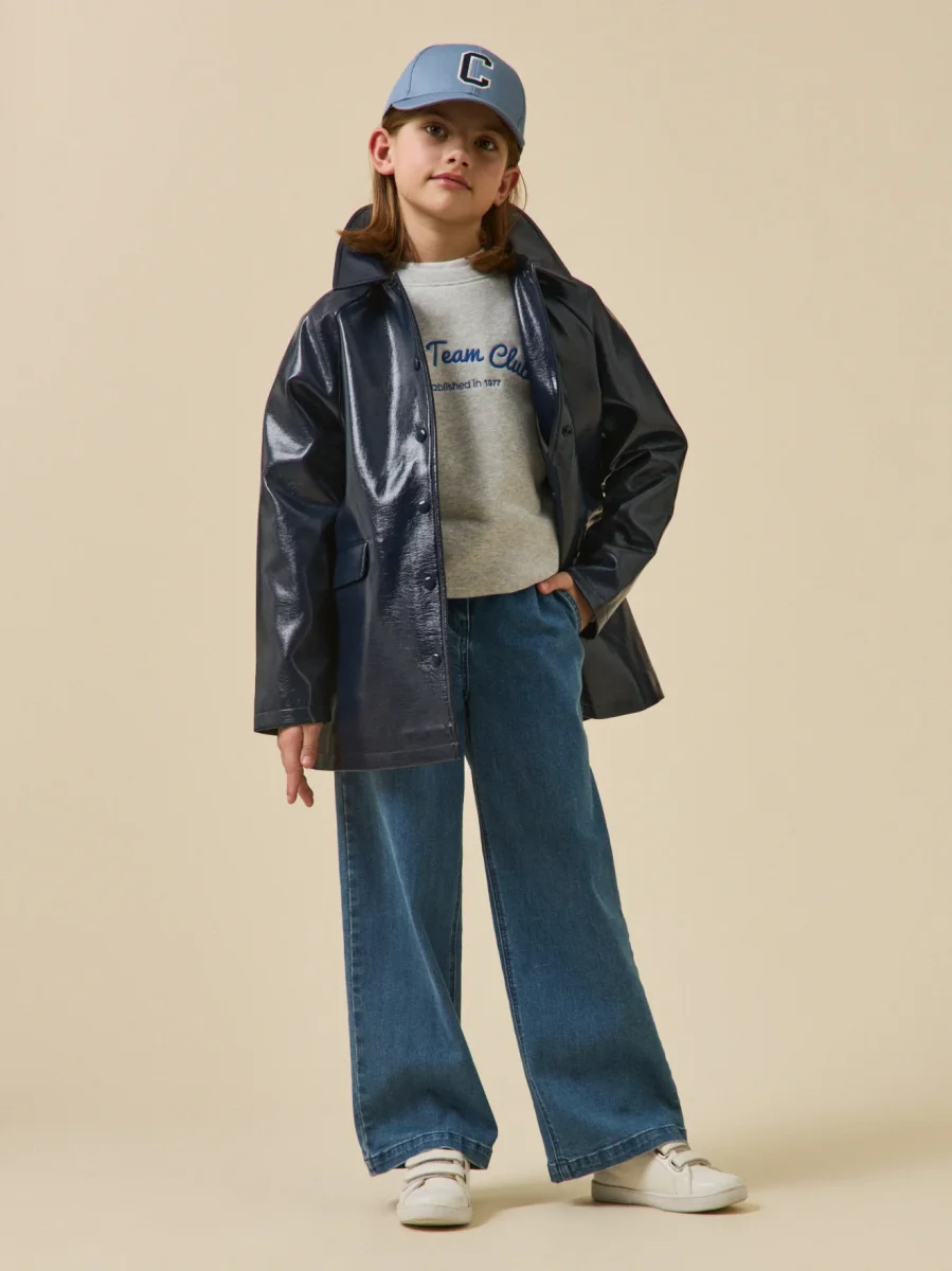 Grand retour du vinyle : un imperméable confortable et pratique, doté d’une capuche amovible. Fermeture par pressions. 2 poches plaquées à rabat Vinyle déperlant, doublure rayée Longueur dessus genou + doublure