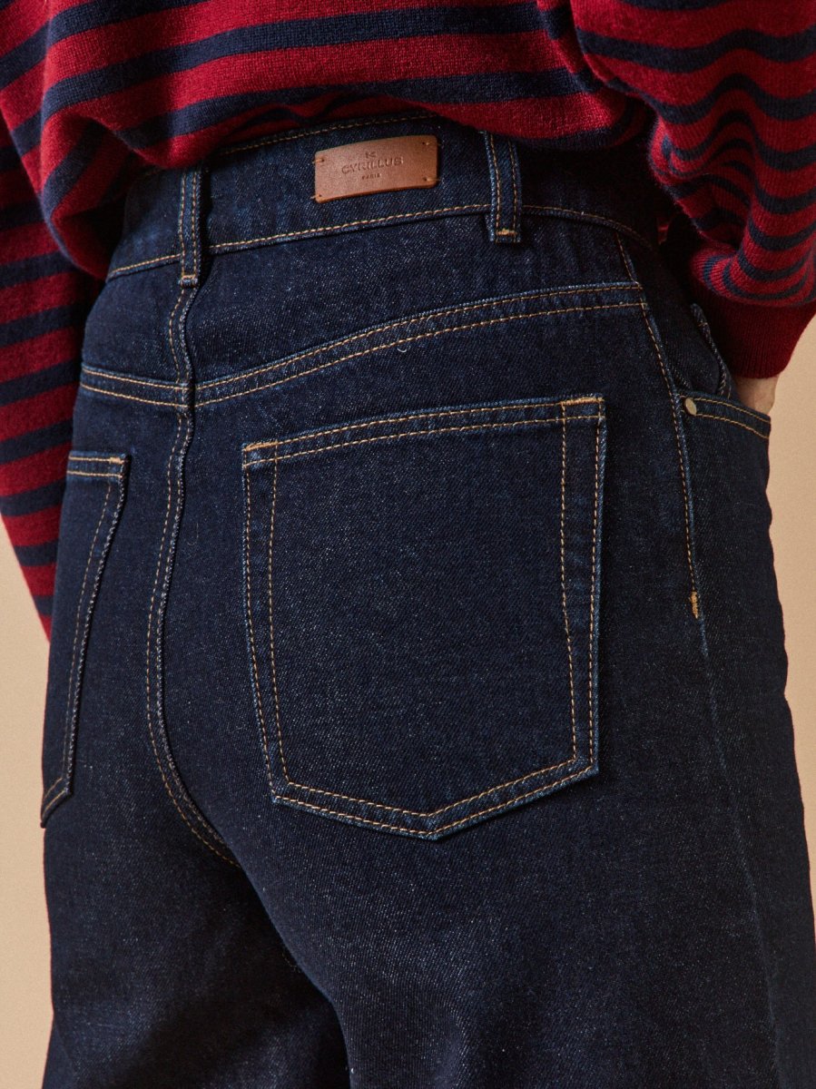 Coupe vintage large, en version denim brut, un jean aussi facile à porter en mode urbain chic qu’en version décontracté cool. Taille : standard Jambe : large Longueur : cheville Entrejambe : 72 cm, bas 24 cm (en taille 38) – Notre mannequin mesure 1m77 et porte du 36 –