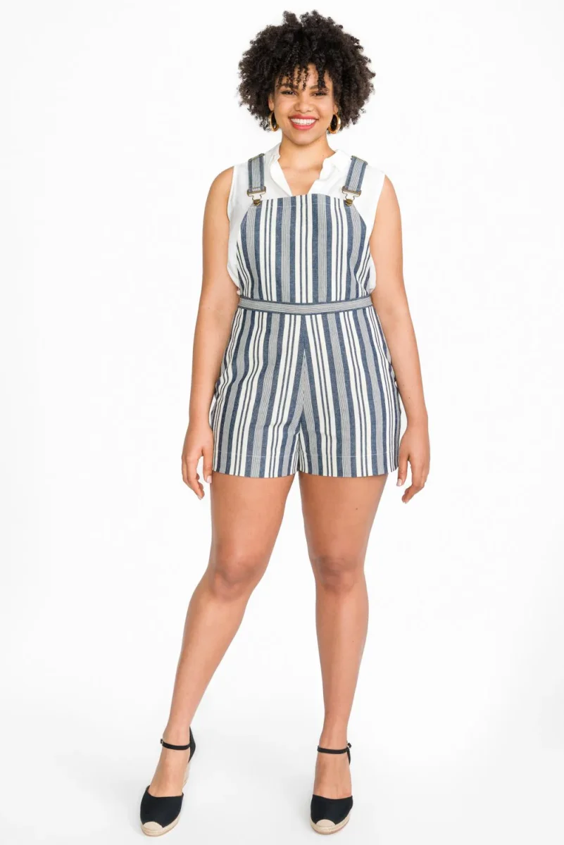Make a more sophisticated version of dungarees with our well-proportioned bib and optional utility pocket, or omit the bib entirely and make a pair of wide-legged cropped pants, full-length pants or shorts. Optional details abound; mix and match the curved slash front pockets, faux fly front, single or double zipper waistband and rounded back patch pockets. To personalize even further, go all out with high contrast topstitching, or take a more minimalist approach for a clean, elegant finish.