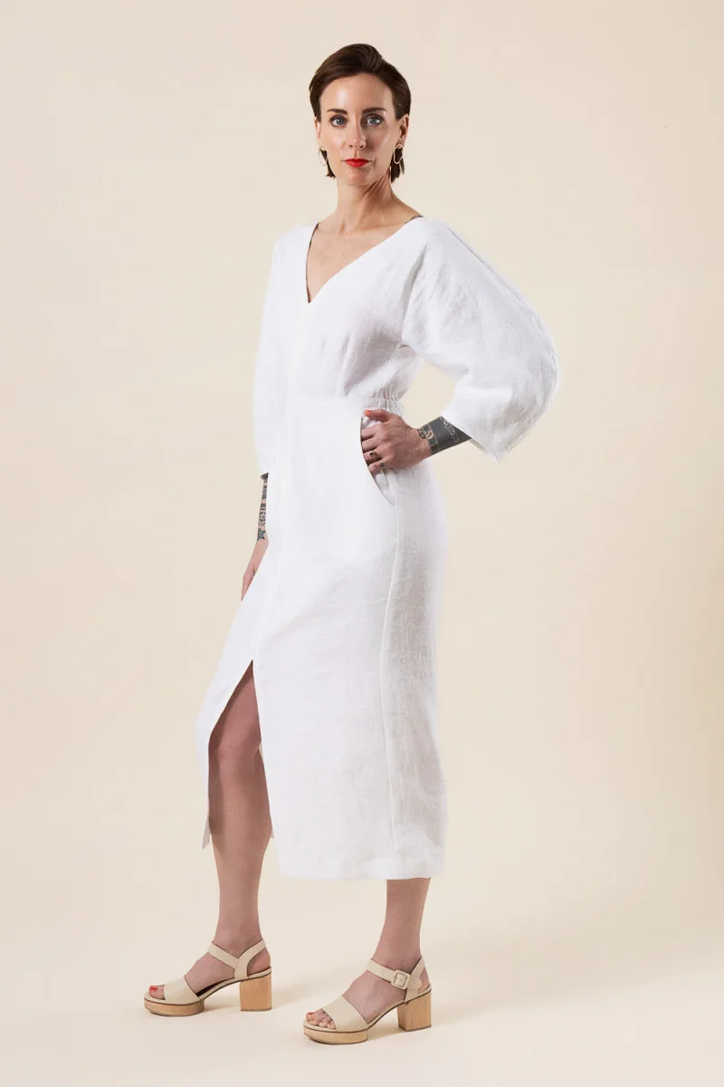 Recommended fabric: To create stability and structure for this design, we suggest stable midweight wovens such as linen, cotton broadcloth, sateen, ikat, and chambray. You may also use lightweight denim and twill provided it has some degree of drape.