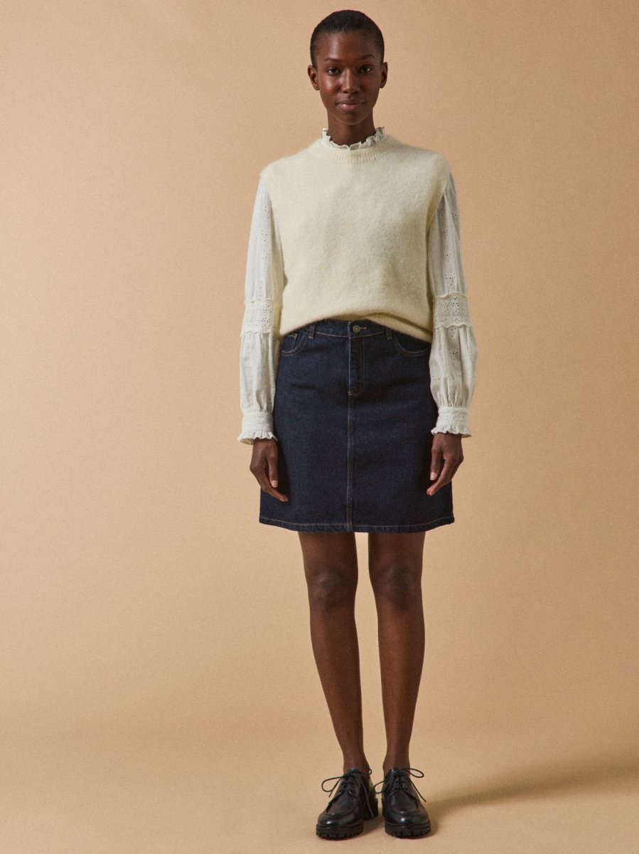 Elle se porte au travail, en week-end et même pour sortir. Bonne base pour se créer un look facile, la jupe en jean reste une valeur sûre du chic urbain.