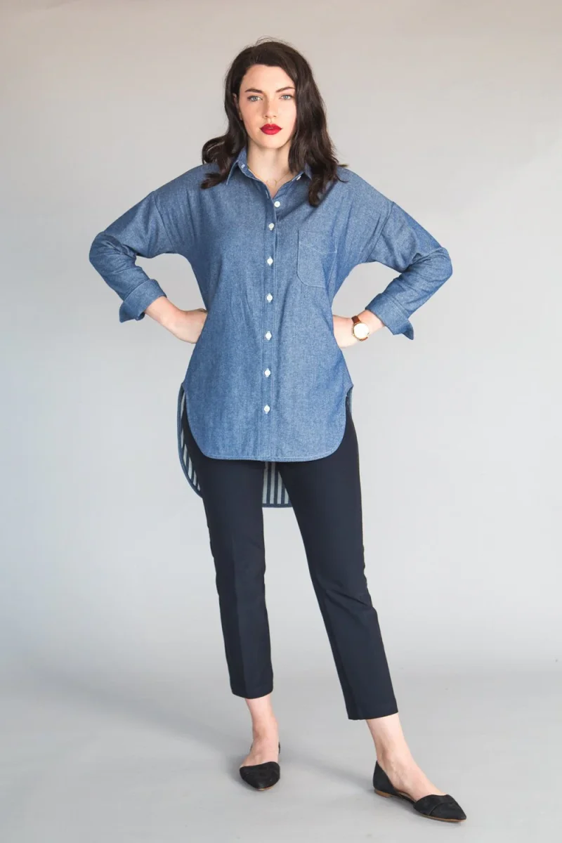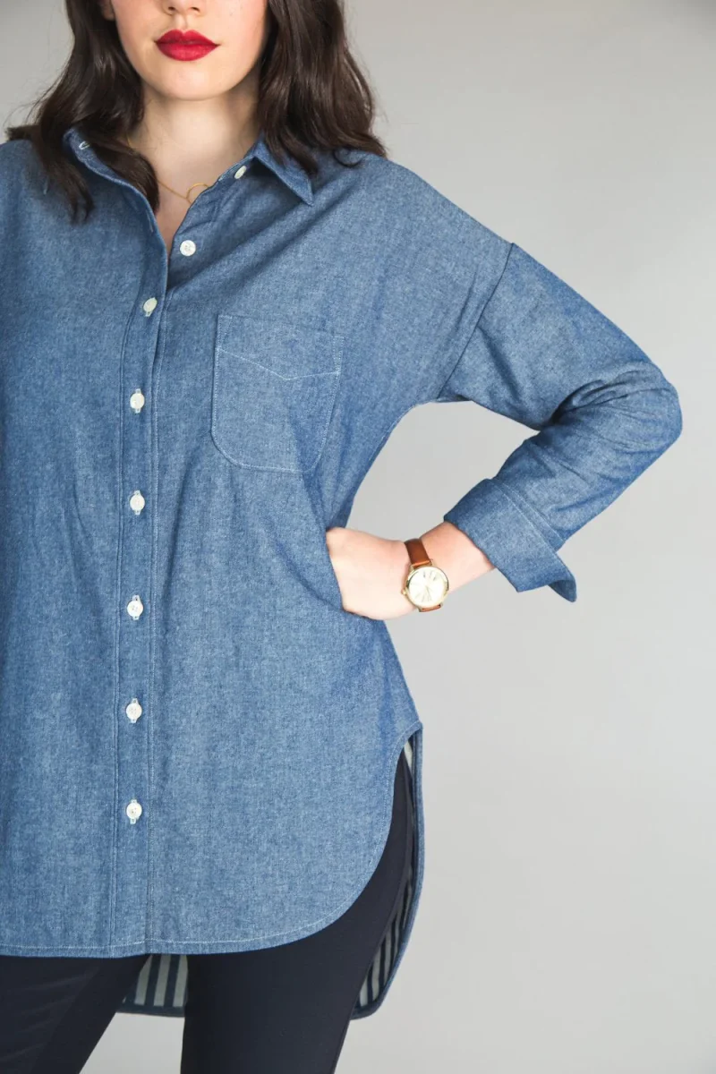 Turn your Kalle Shirt or Shirtdress into a cozy, long-sleeve shirt! This PDF pattern expansion includes a drop sleeve with a chic folded cuff and classic tower placket and can be sewn directly to the existing Kalle pattern.