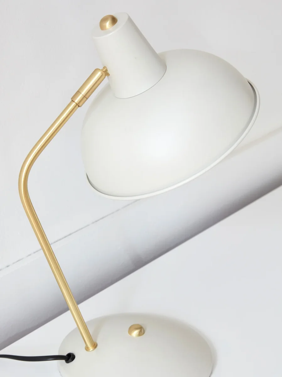 La lampe rétro impose son style avec beaucoup d’élégance. On l’aime pour sa forme cloche, ses coloris actuels et pour le doux contraste entre métal doré vieilli et peinture mate.