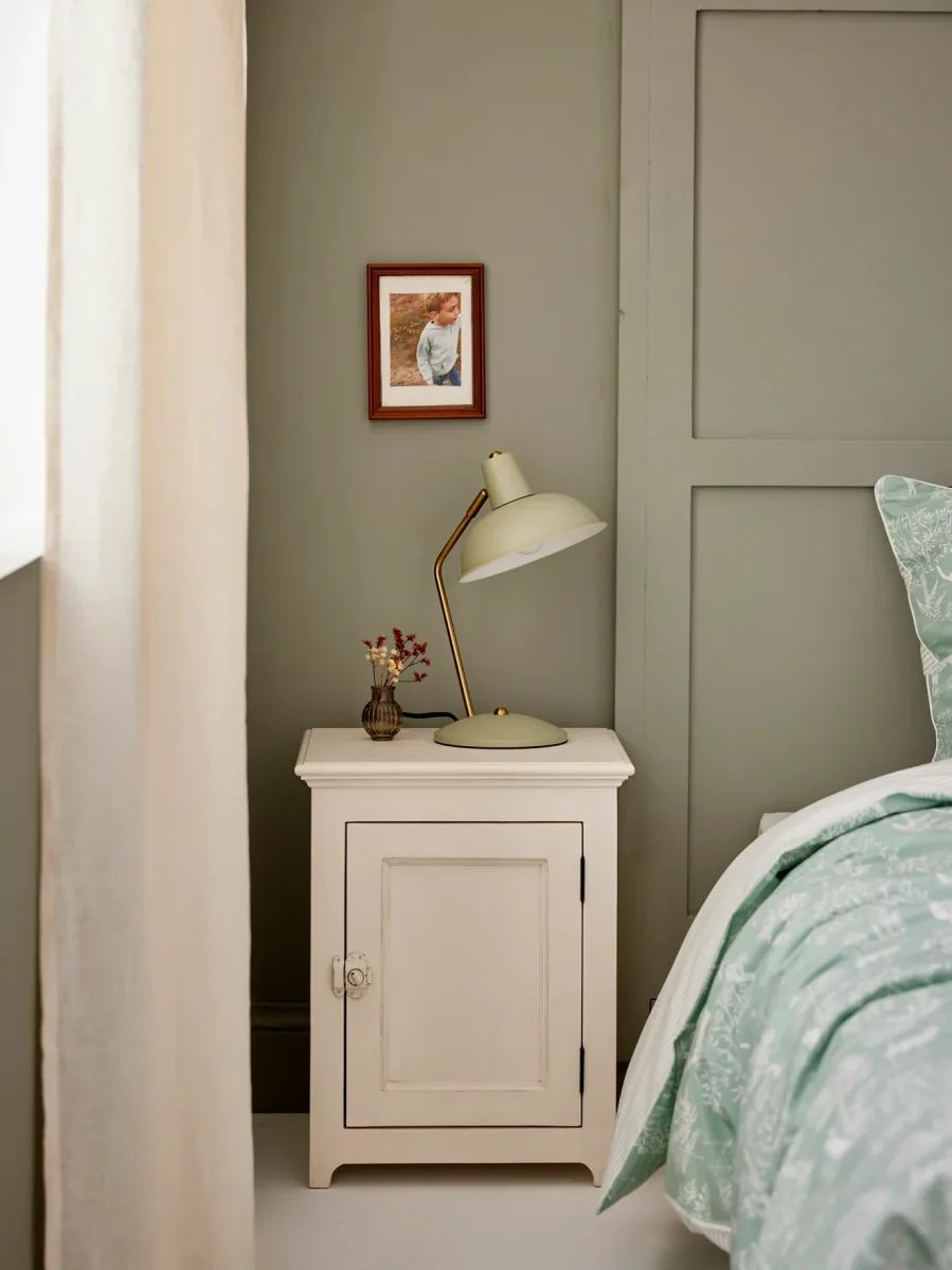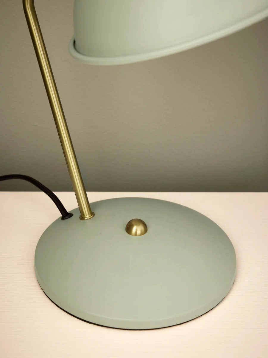 La lampe rétro impose son style avec beaucoup d’élégance. On l’aime pour sa forme cloche, ses coloris actuels et pour le doux contraste entre métal doré vieilli et peinture mate.