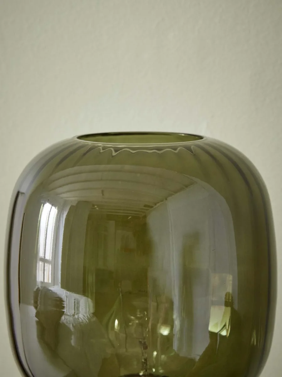 Lampe à poser Louise fabriquée en verre teinté au Portugal. Elle joue l’harmonie entre inspiration vintage et design actuel.