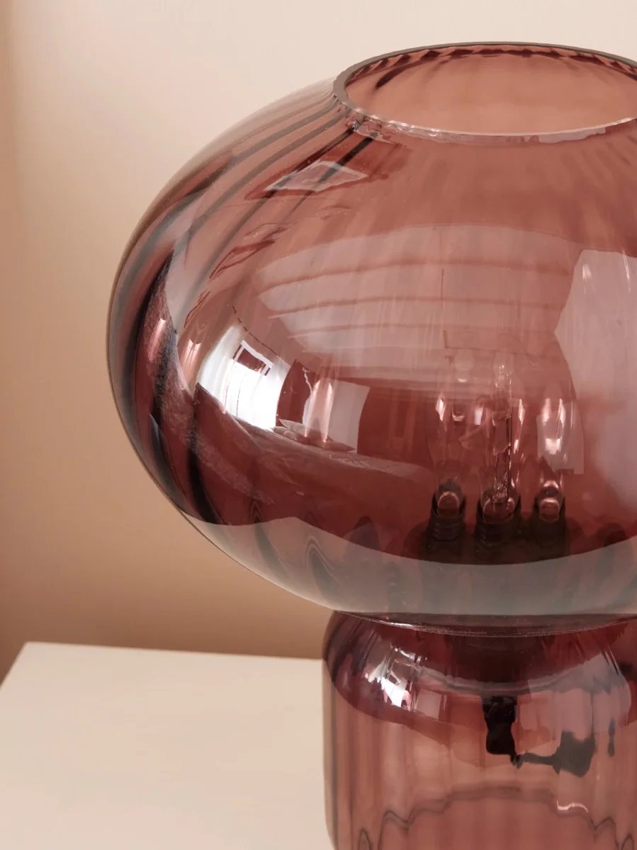 Lampe à poser Martin fabriquée au Portugal en verre teinté et ciselé. Un travail sur verre parfaitement maitrisé inspiré des années 50.
