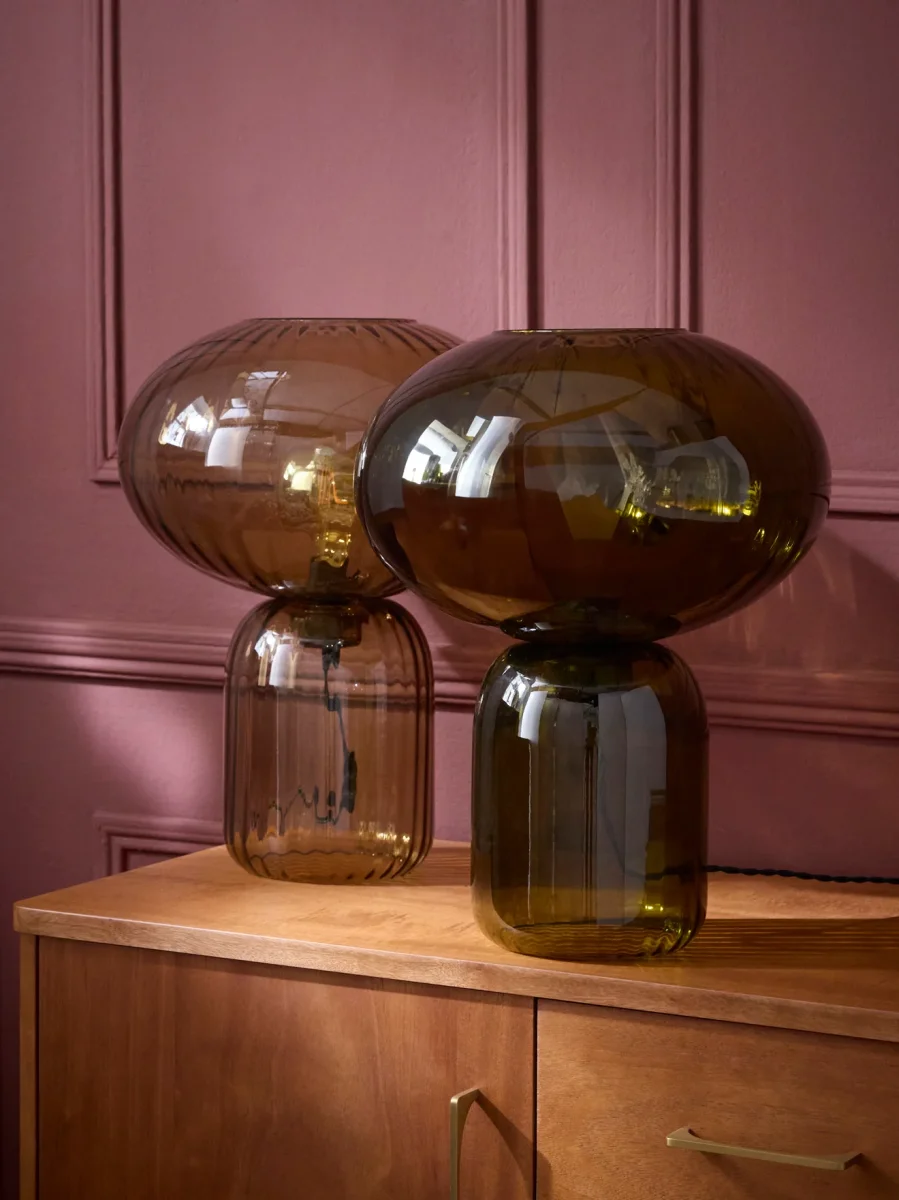 Lampe Martin en version XL. Grande lampe à poser en verre teinté et ciselé. Inspiration des années 50, fabriquée au Portugal.
