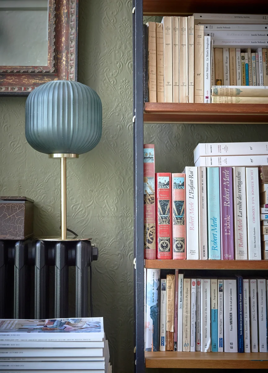 Lampe à poser en verre strié et métal doré. Un style chic, raffiné et sculptural, façon art déco.
