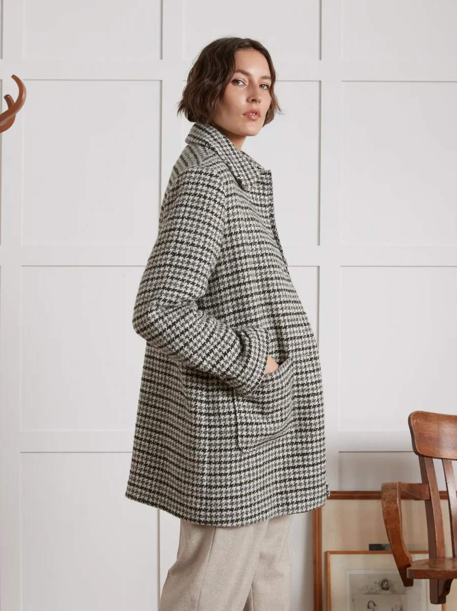 Manteau court lainage pied de coq femme