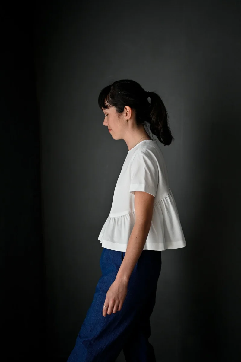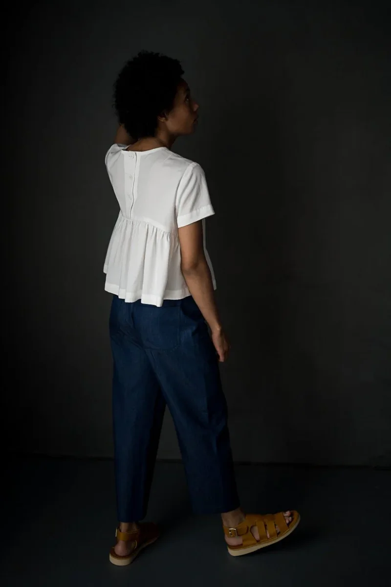 Florence is a sweet swingy top and dress with a button back detail and soft high low gathers.