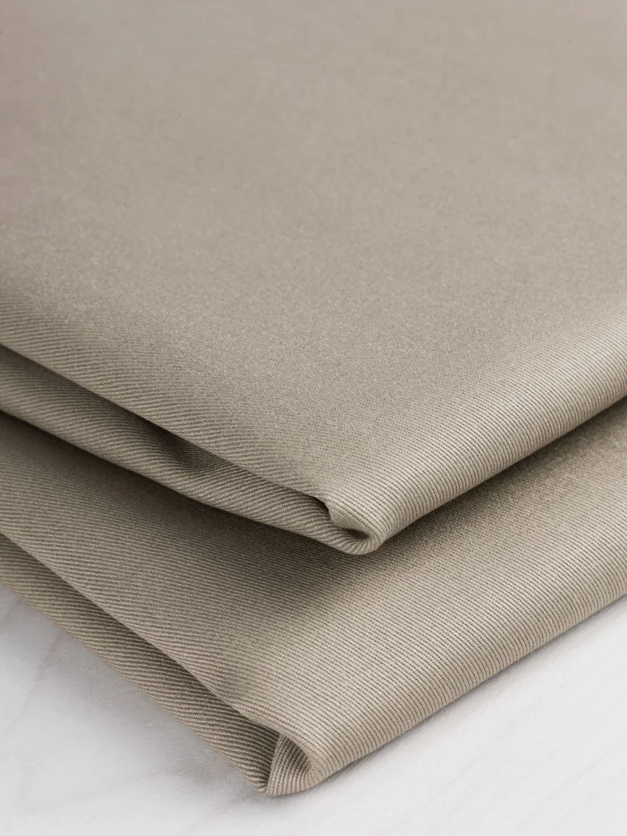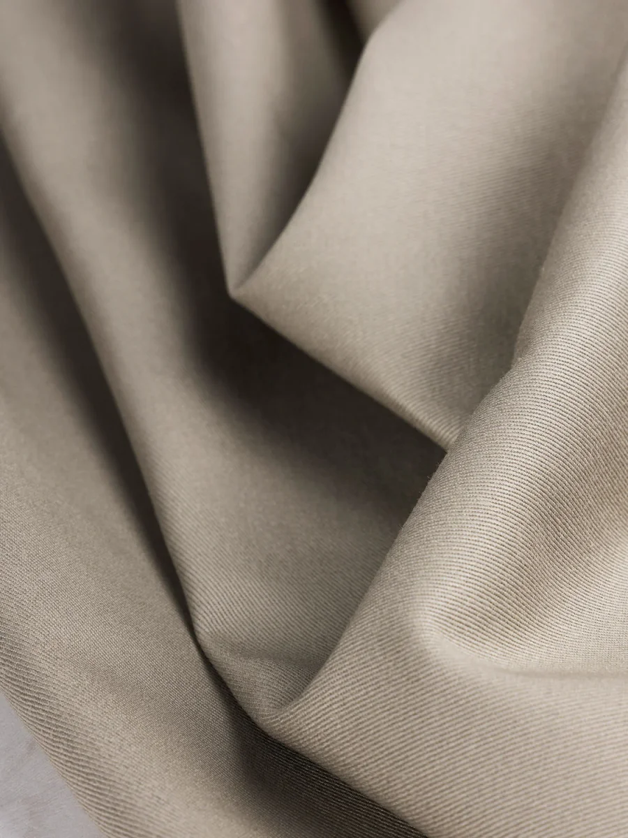 Bottomweight doesn’t have to be synonymous with boring! This gorgeous organic cotton twill in a selection of oh-so-springy shades is a breath of fresh air, made with low-impact dyeing methods and 100% biodegradable fibre. While it’s as crisp as you’d want a twill to be, at 7 oz it’s a fantastic weight for transitional seasons, and versatile enough for a variety of garments from trousers and skirts to jackets and structured workwear (consider waxing it for a water-resistant finish!) Fully opaque, it does not require a lining.