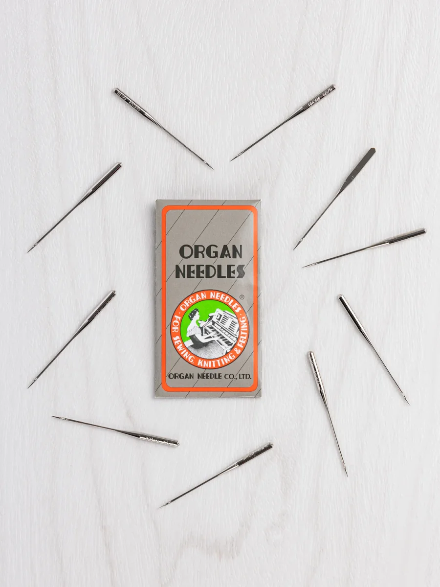 These needles are flat on one side. Organ needles work in most modern domestic sewing machines, sergers and embroidery machines, including Janome, Bernina, Juki, Brother, Elna, Baby Lock and Singer. Always confirm with your sewing machine manufacturer to ensure you are using a needle that will work with your machine!