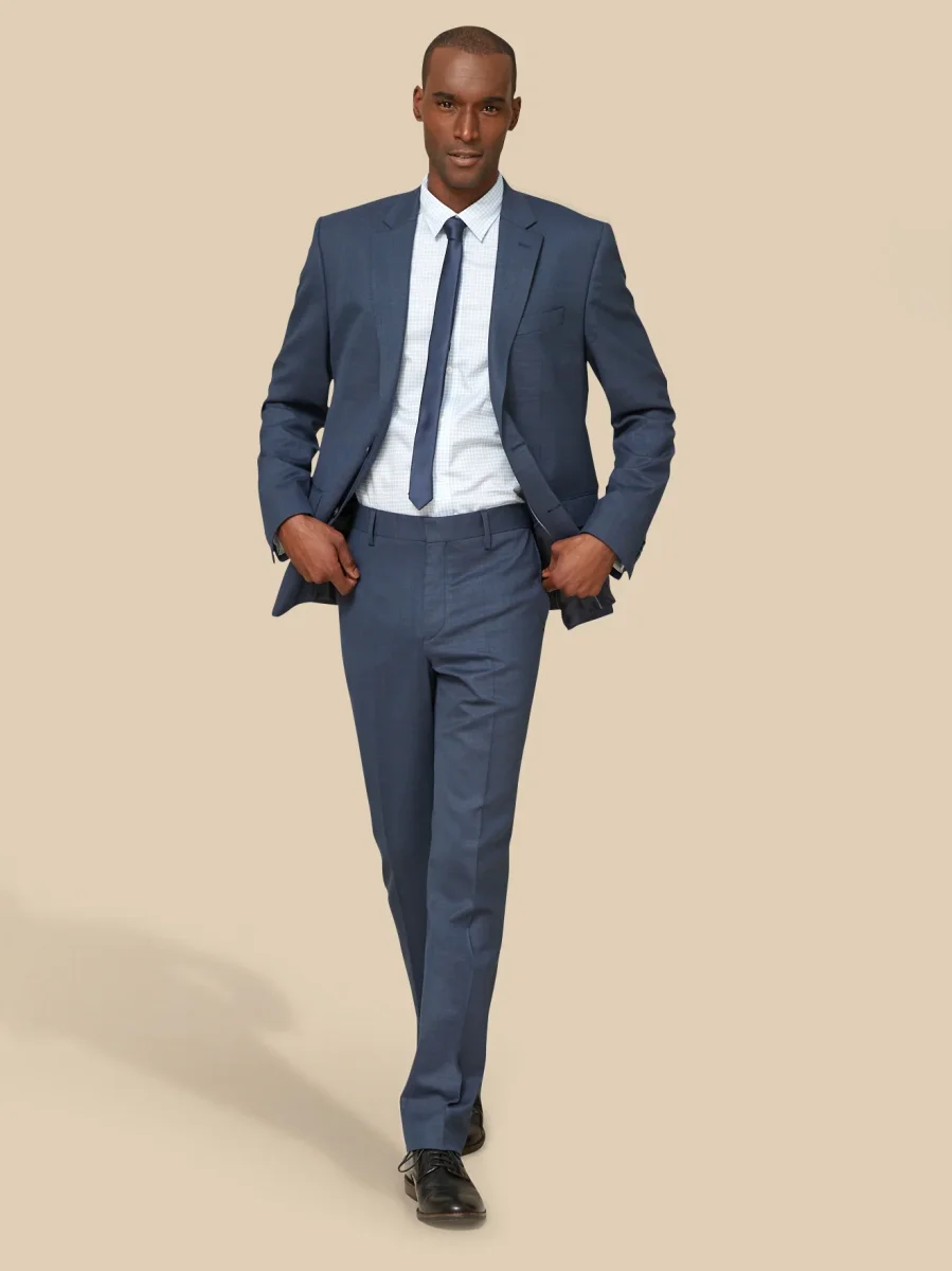 Volume raccourci sur un remarquable tissu texturé. Notre pantalon de costume s’offre un look plus actuel, plus souple, plus confortable. Avec sa veste coordonnée ou en mode solo avec une chemise unie ou un T-shirt, il assure un style citadin impeccable.