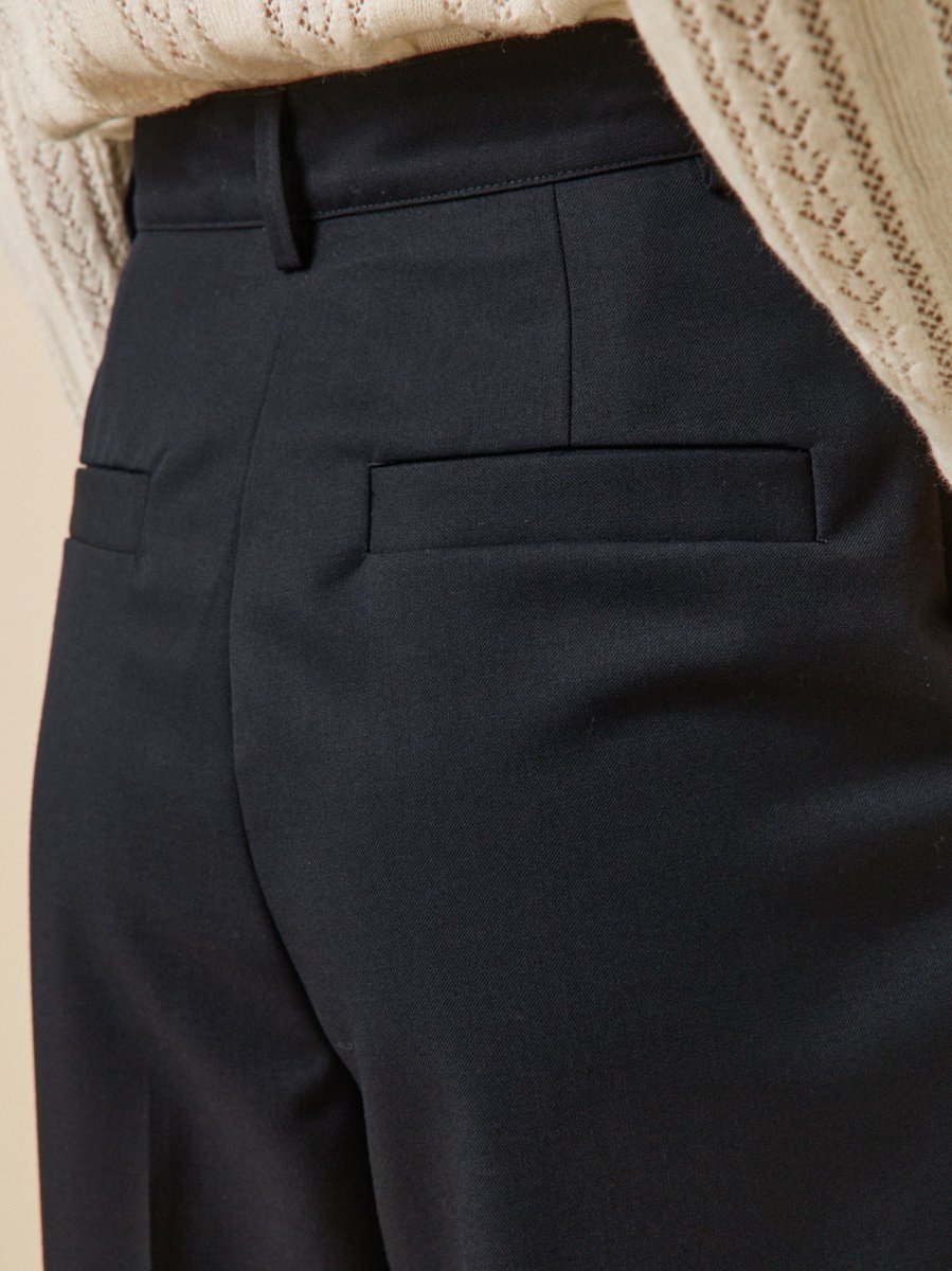 Le chic à l’état pur : un volume XXL sublimé par la finesse d’une laine froide. Ce pantalon joue sur la verticalité et le mouvement pour dessiner une silhouette élancée. Un essentiel du vestiaire contemporain où l’aisance du large rencontre l’exigence du luxe. Tissu et confection Europe.