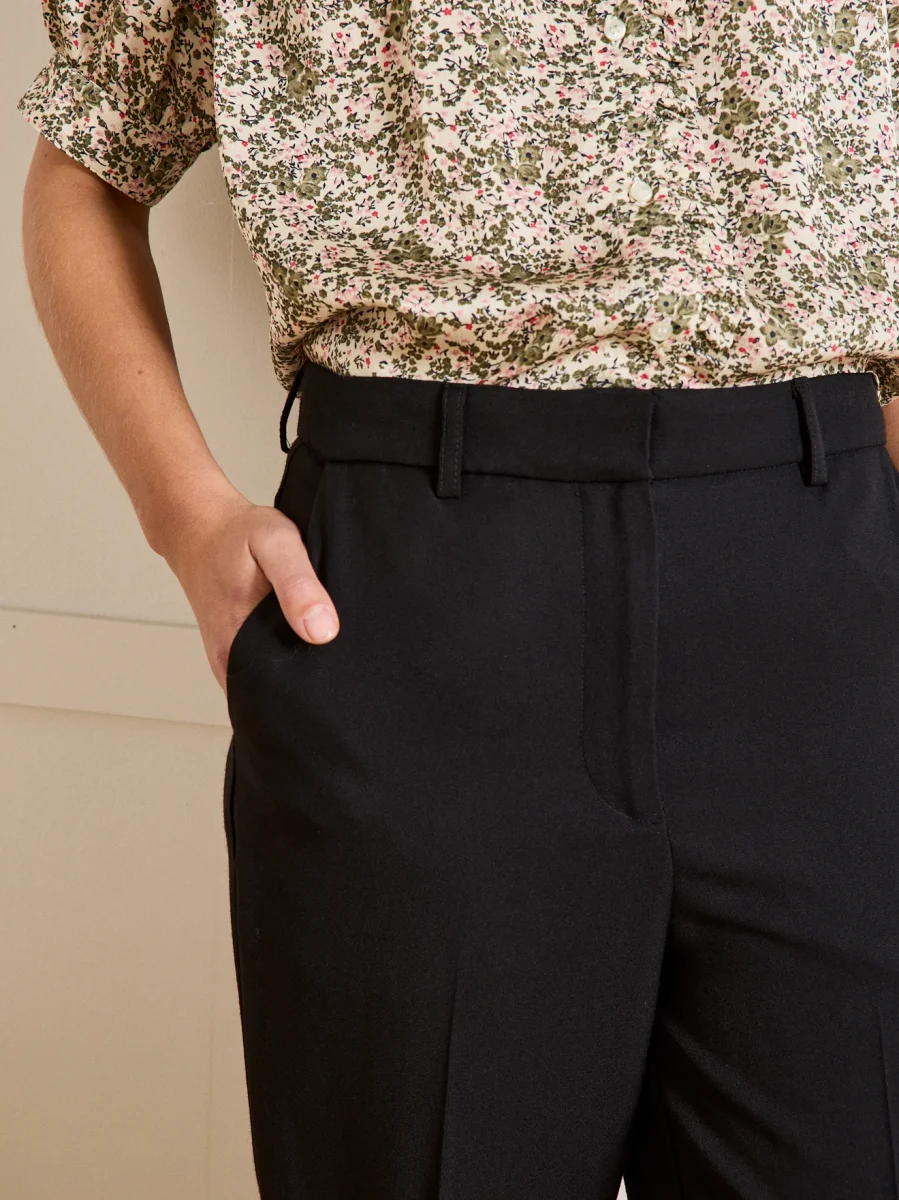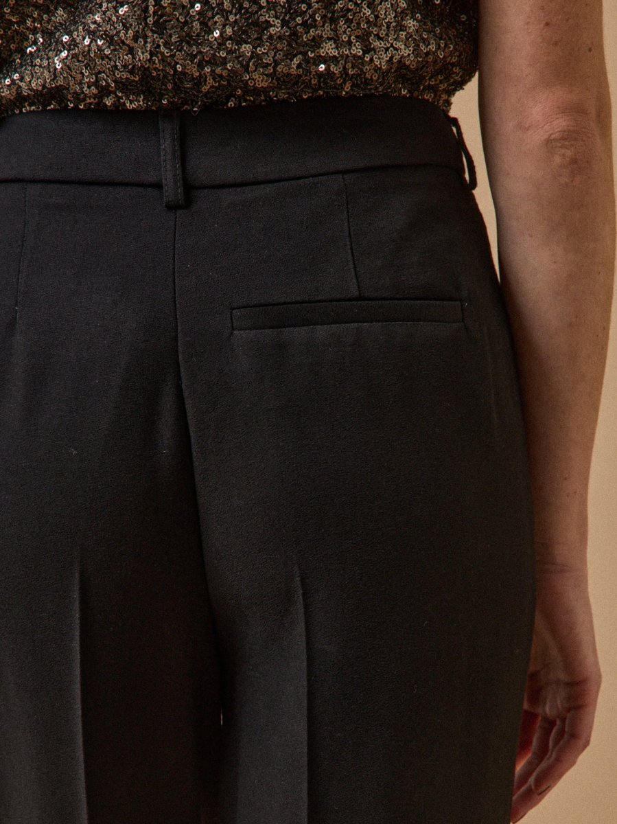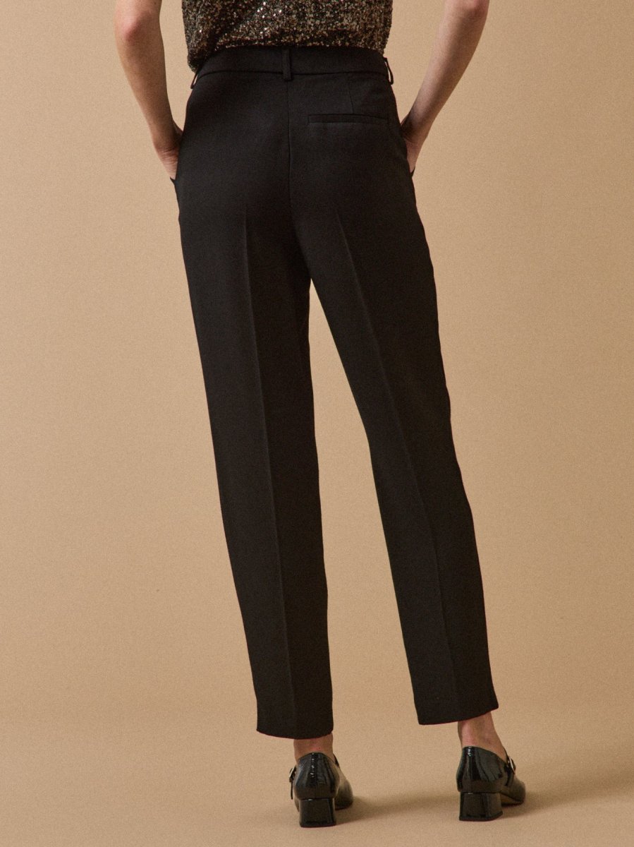 Nos stylistes l’interprètent en version classique, dans un coloris intemporel. Toujours impeccable, le pantalon se porte au quotidien, en mode working ou pour une occasion festive. Un must du dressing urbain chic, confectionné en Europe dans un crêpe lourd au tomber parfait.