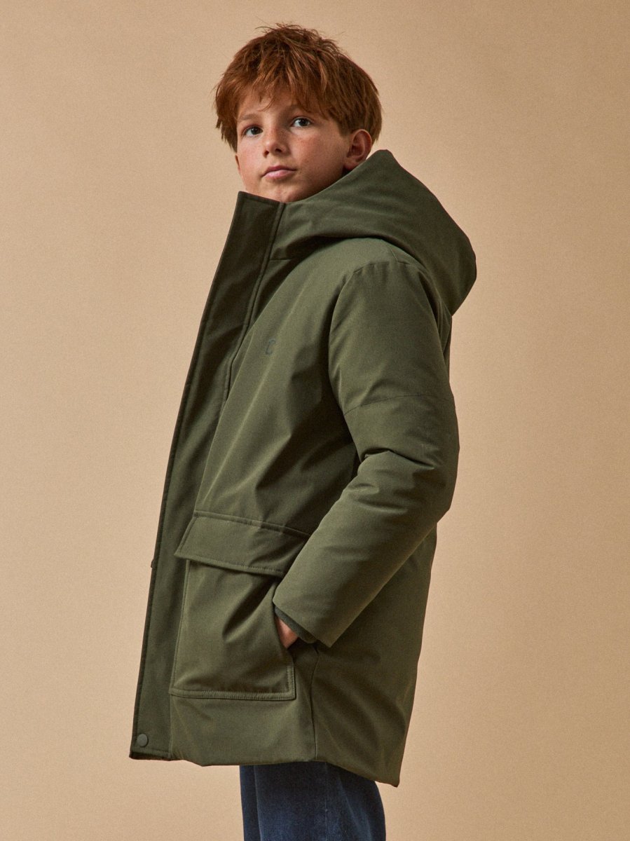 - Parka Col montant. Fermeture par glissière sous patte pressionnée.