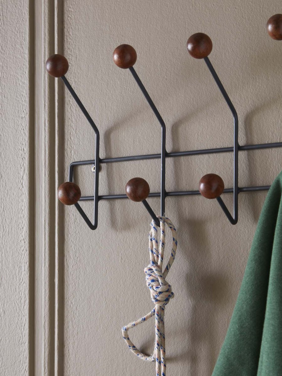 Le portemanteau mural Alice est composé de 8 boules crochet en bois de manguier. La structure est en métal peint coloris charbon. Il se fixe facilement à une porte ou un mur. Patère fabriquée en Inde. L.46 x H.23,5 x P.9 cm
