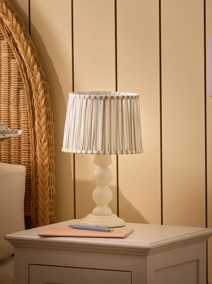 Ce pied de lampe Bertille, façonné de façon artisanale dans du bois de manguier laqué et rythmé par de douces formes arrondies, offre une présence élégante, empreinte d’un charme anglais. Associé à l’abat-jour plissé, il compose un ensemble harmonieux qui diffuse une délicate modernité dans tout intérieur.