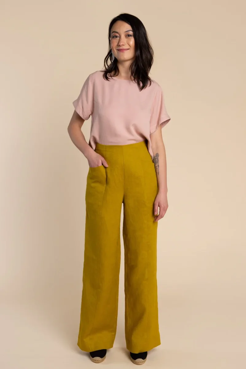 - This pattern can be made with a variety of fabrics depending on the desired effect. For a more defined shape, use structured wovens such as linen, chambray, or lightweight denim or twill (heavyweight wovens may create too much volume at the elastic waist). For a swishy, glamorous look, use rayon challis, tencel, or silk.