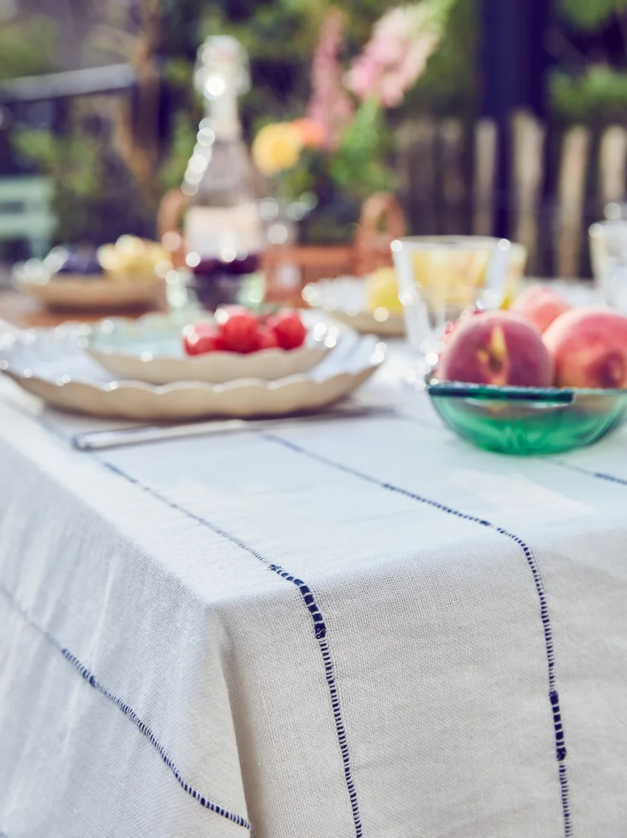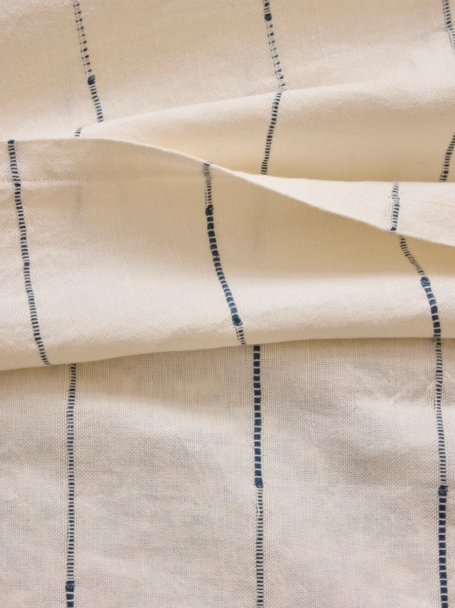 Plaid, couvre-lit, nappe… Grande étoffe, tissée et rayée de fils bleus, fabriquée au Portugal. Pièce déco authentique et naturelle aux divers usages.