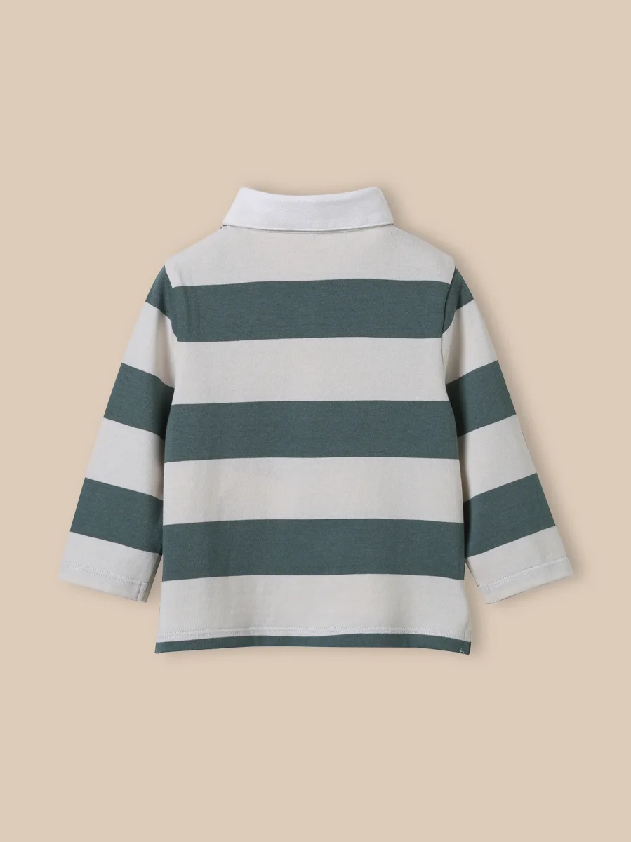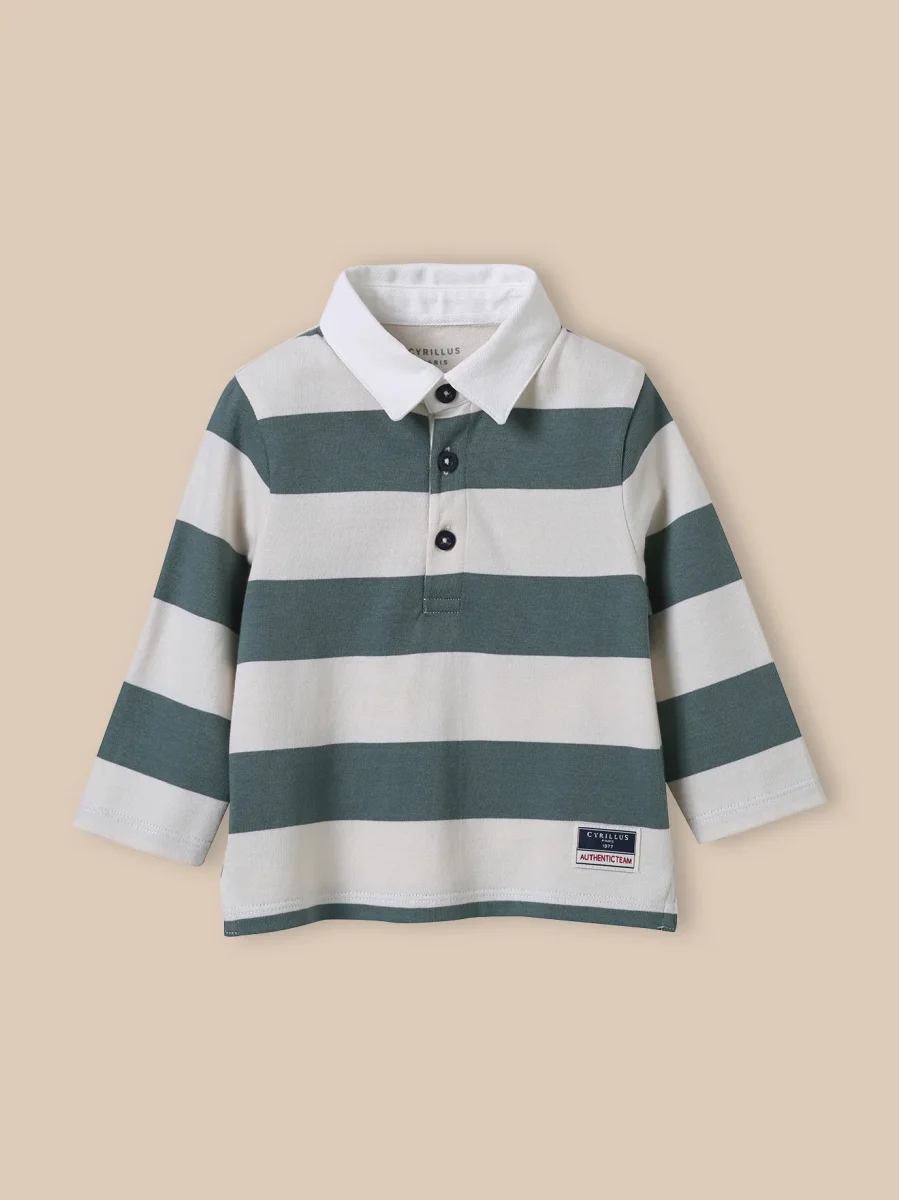 Pour une équipe gagnante : une rayure graphique et colorée sur un jersey en coton biologique agréable à porter !