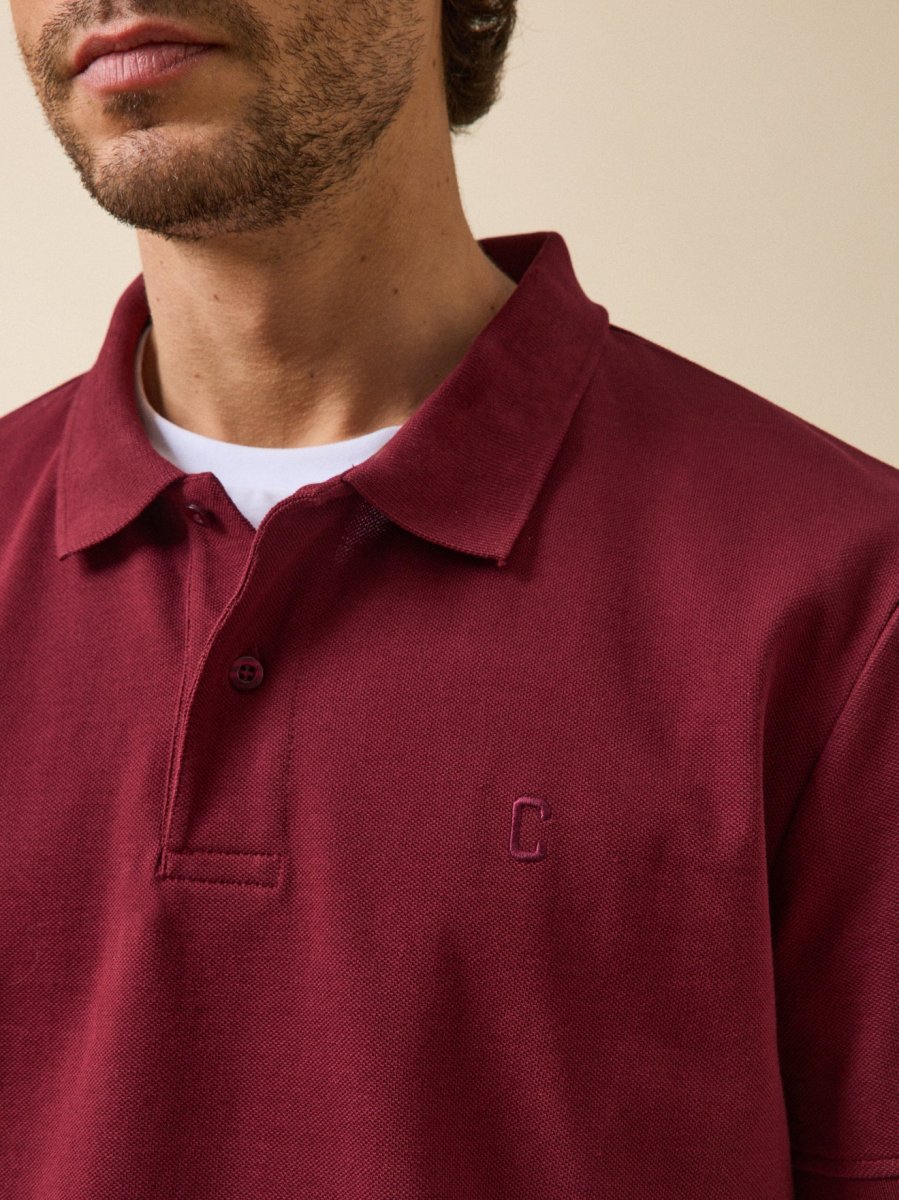 - Col polo sur patte 2 boutons ; monogramme brodé poitrine ton sur ton