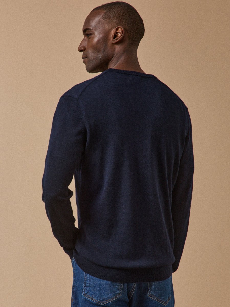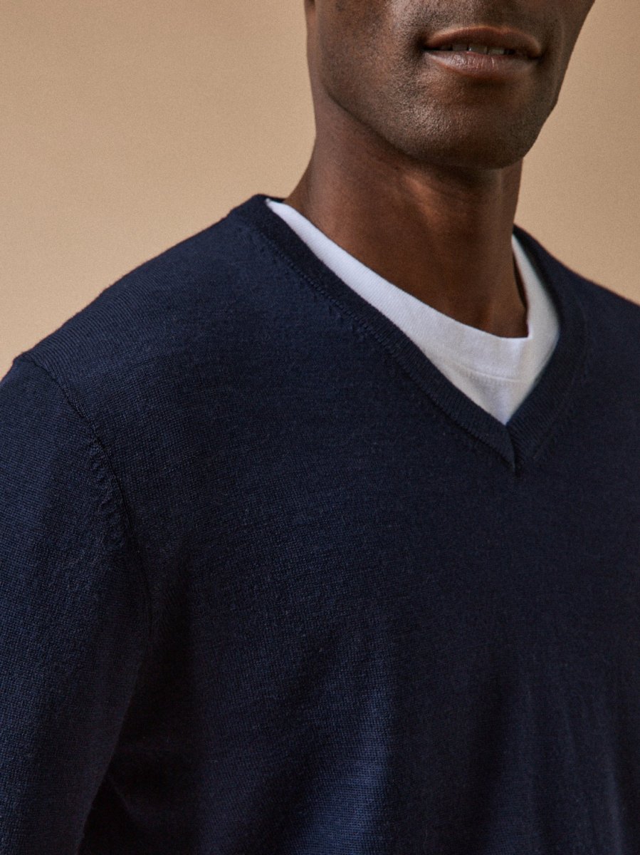 Pull fin col V laine mérinos homme
