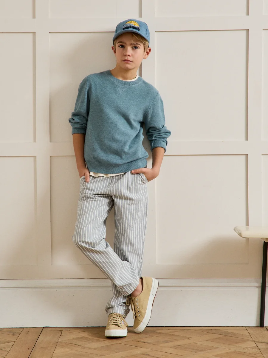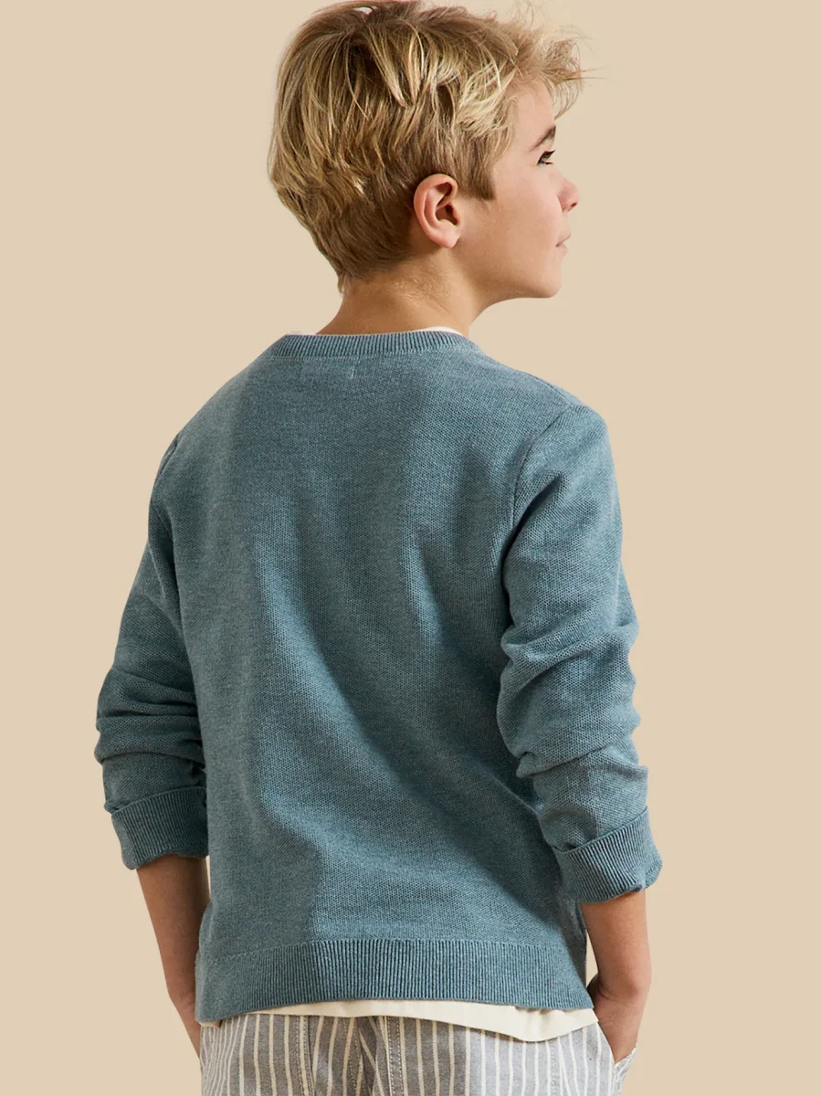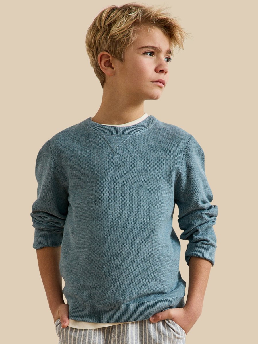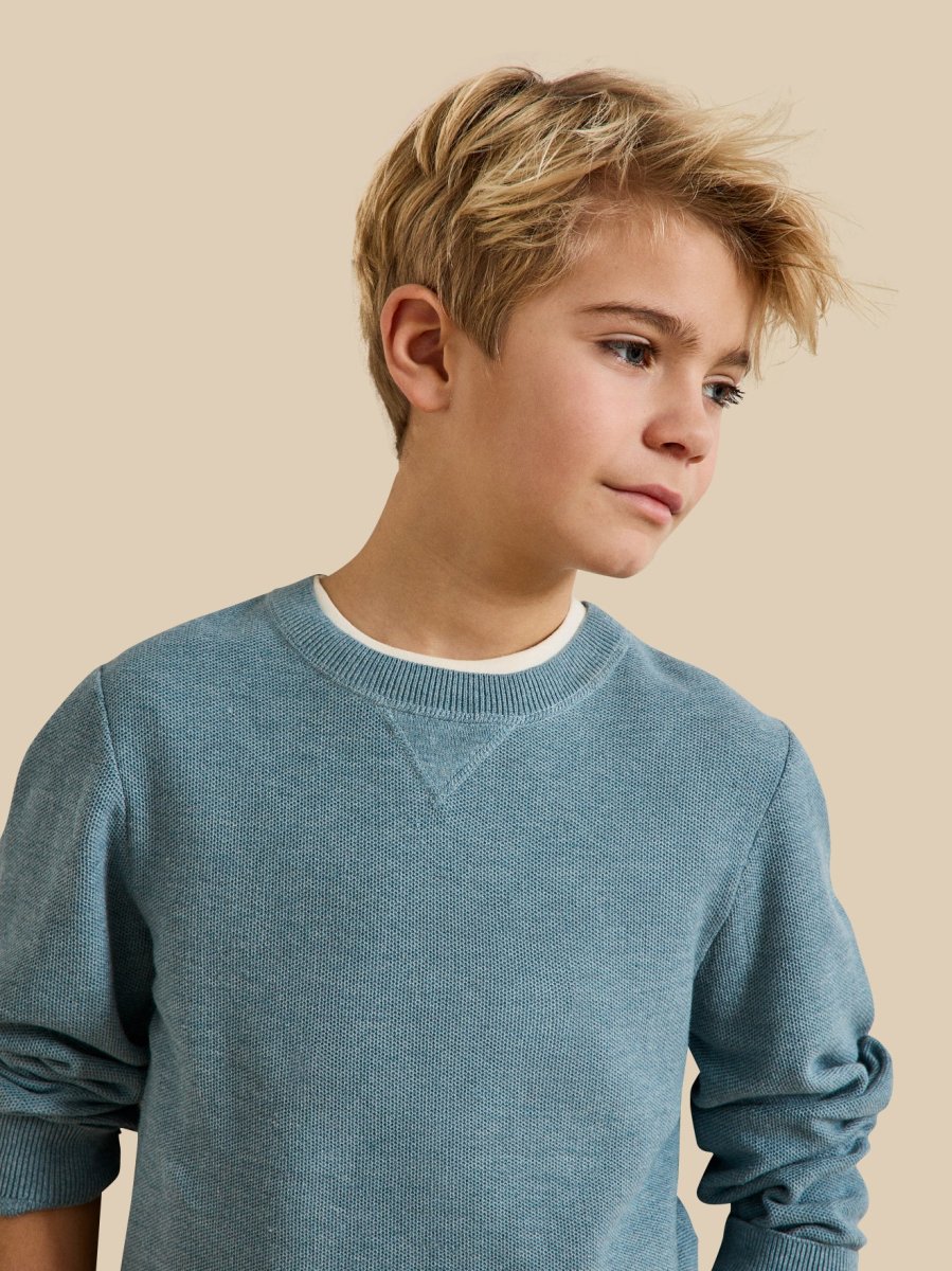 Faussement classique, le pull col rond se réinvente avec une maille fantaisie empruntée aux polos et reprend les codes du sweat avec sa découpe sous le col. Un essentiel retravaillé avec modernité, parfait pour une silhouette casual et toujours chic.