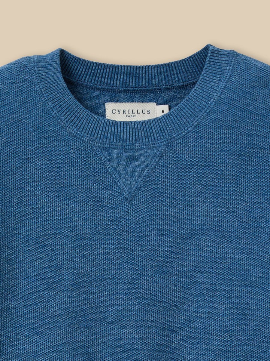Faussement classique, le pull col rond se réinvente avec une maille fantaisie empruntée aux polos et reprend les codes du sweat avec sa découpe sous le col. Un essentiel retravaillé avec modernité, parfait pour une silhouette casual et toujours chic.