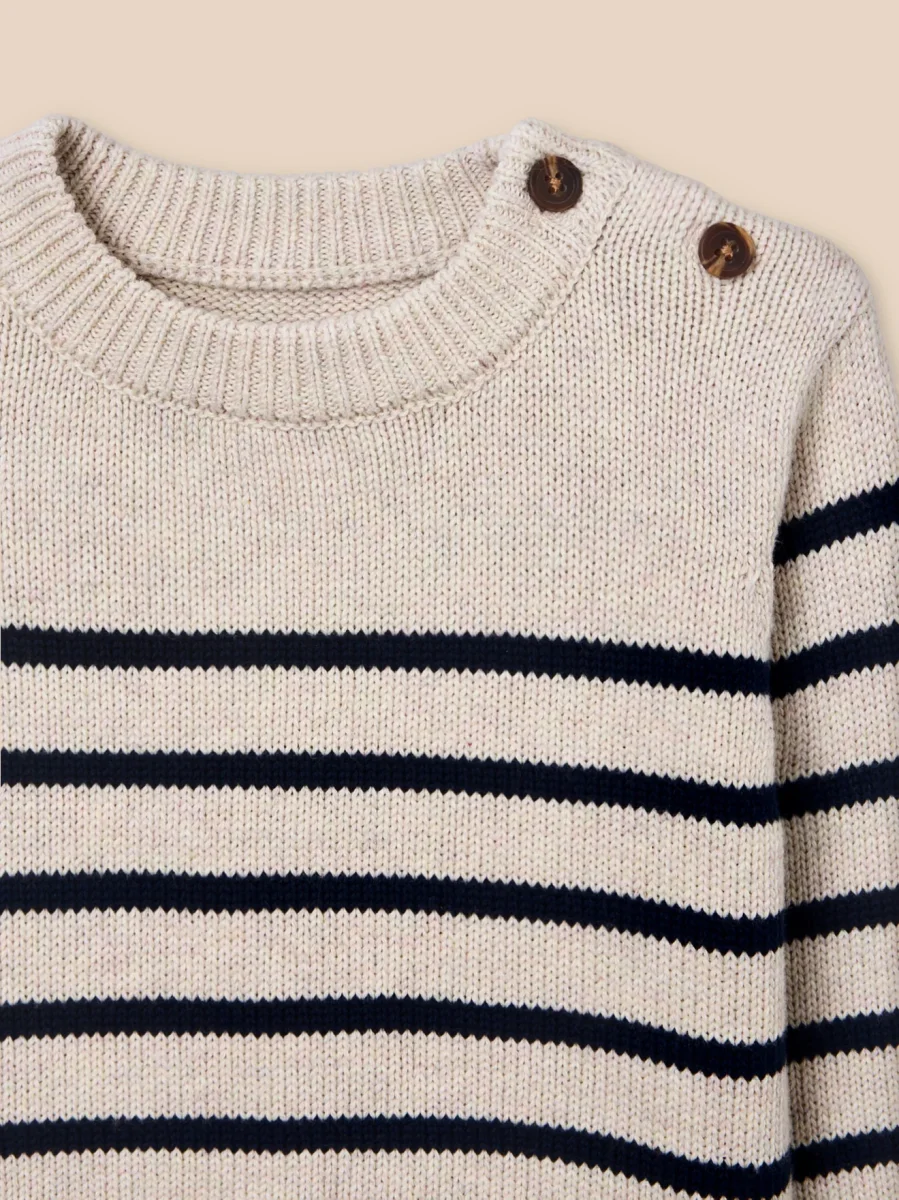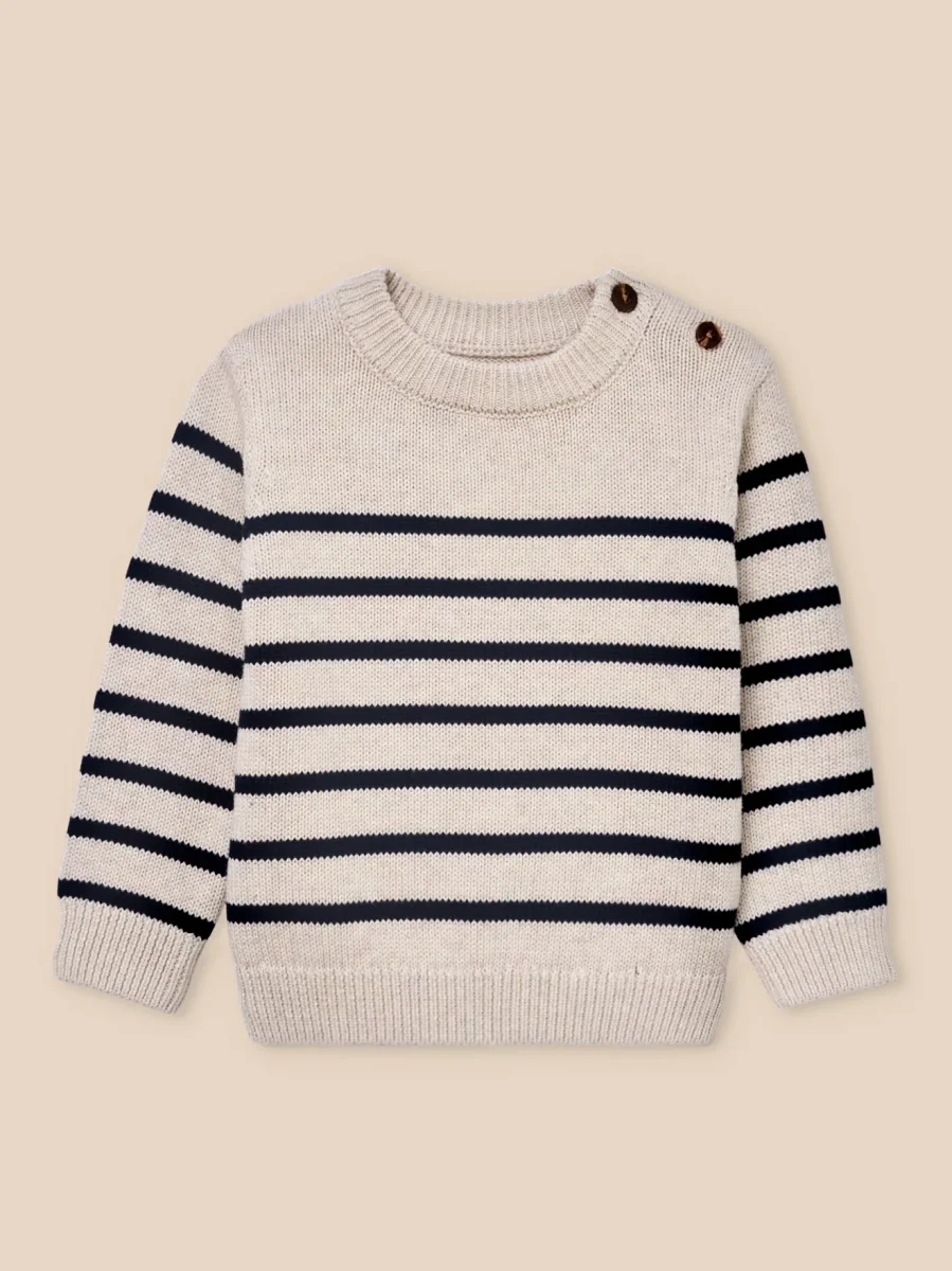 L’iconique pull marin vient compléter avec charme le vestiaire de bébé.