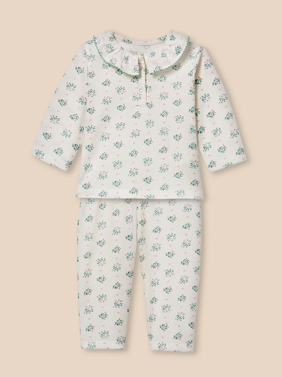 Avec son imprimé exclusif, frais et délicat, ce pyjama apporte une touche poétique à l’heure du coucher.