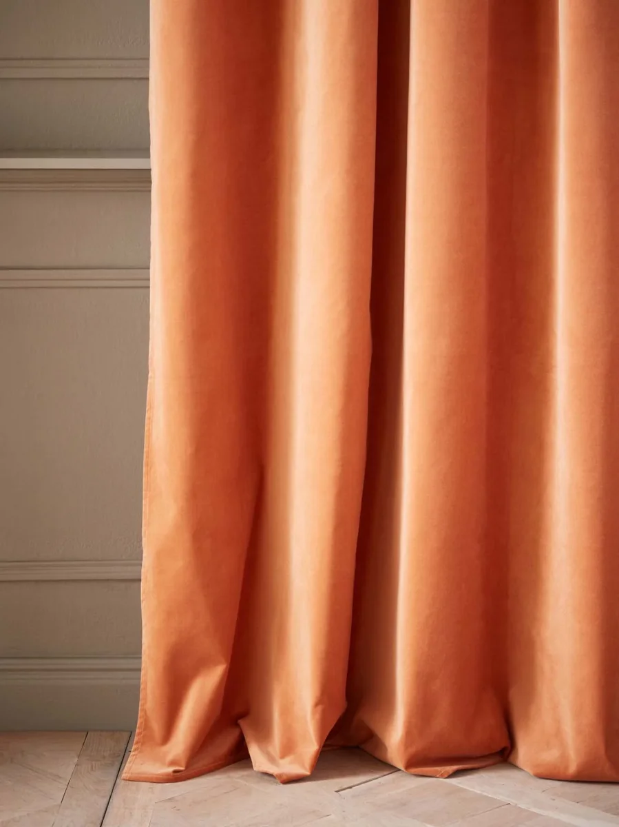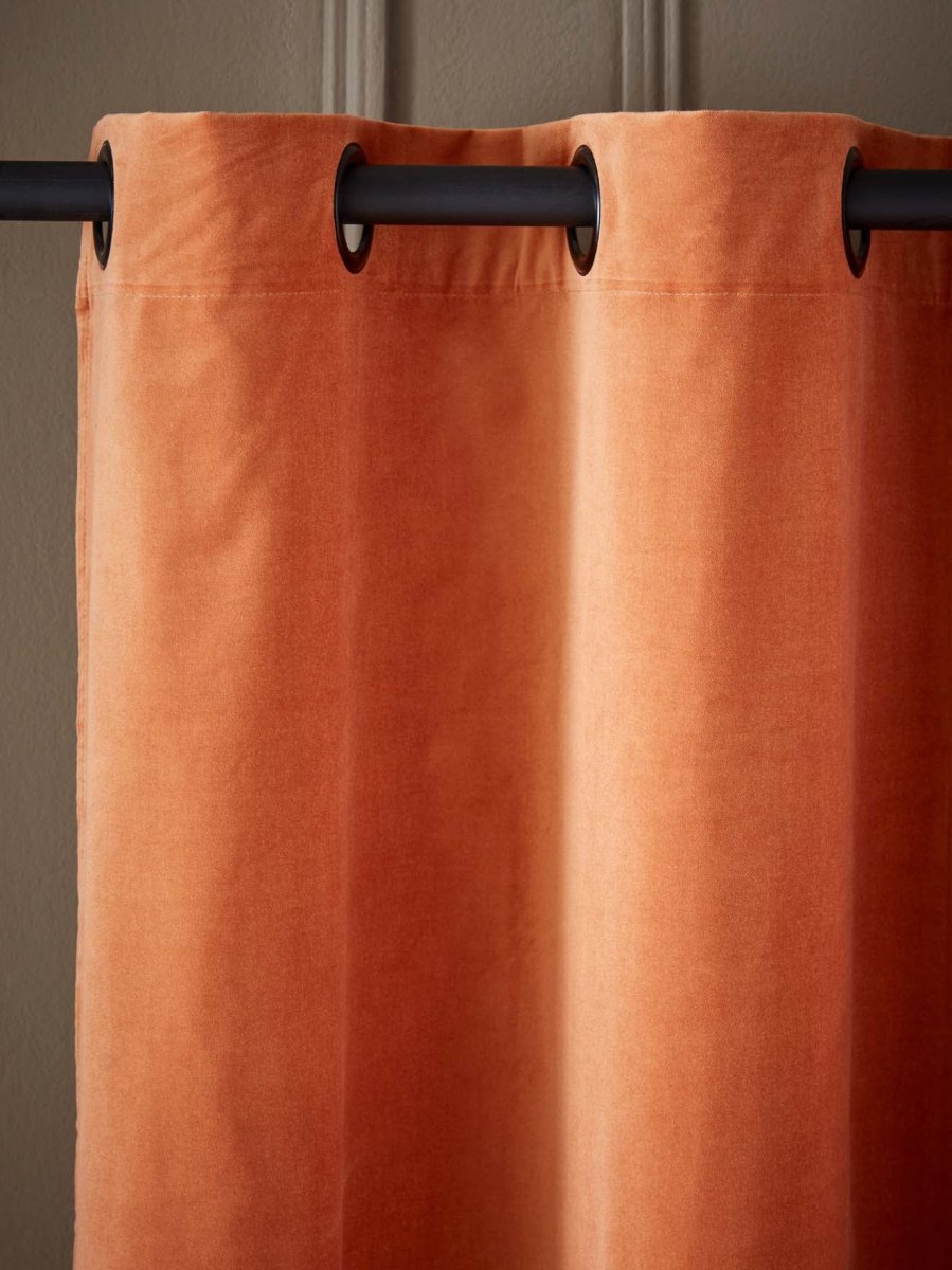 Le rideau en velours de coton procure une atmosphère élégante et chaleureuse. Il se décline dans une palette de coloris délicats et actuels. Les oeillets noirs accentuent cette touche de modernité.