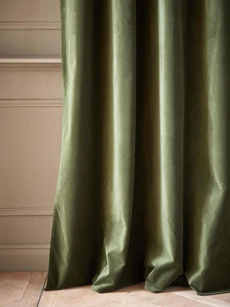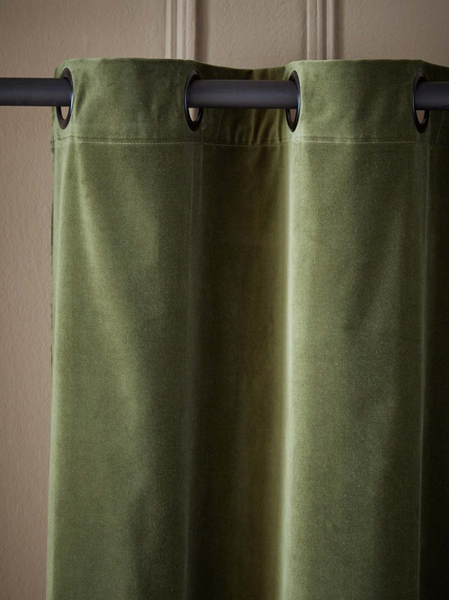 Le rideau en velours de coton procure une atmosphère élégante et chaleureuse. Il se décline dans une palette de coloris délicats et actuels. Les oeillets noirs accentuent cette touche de modernité.