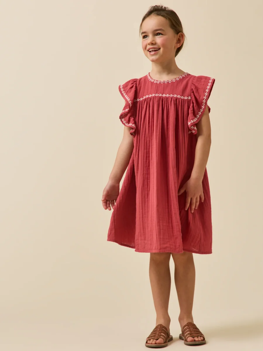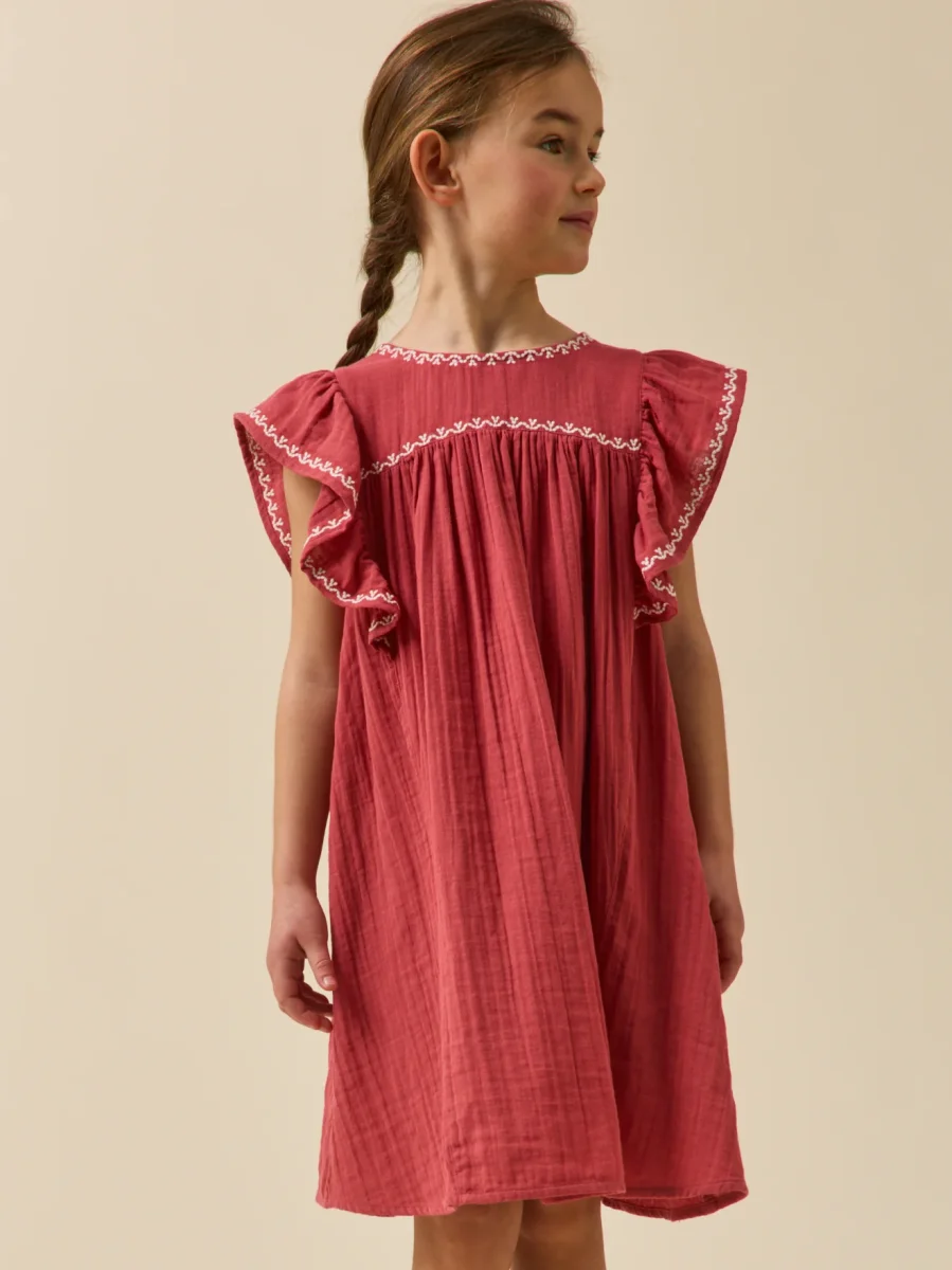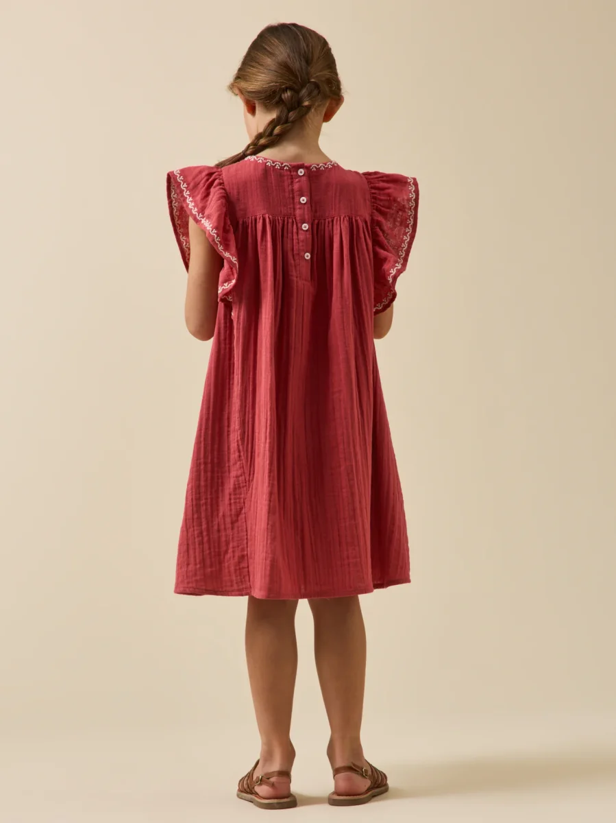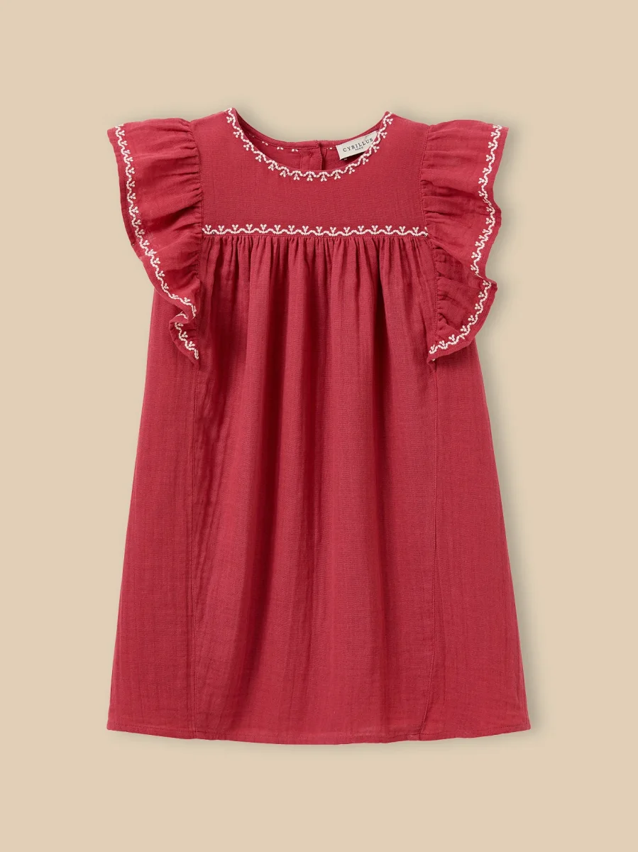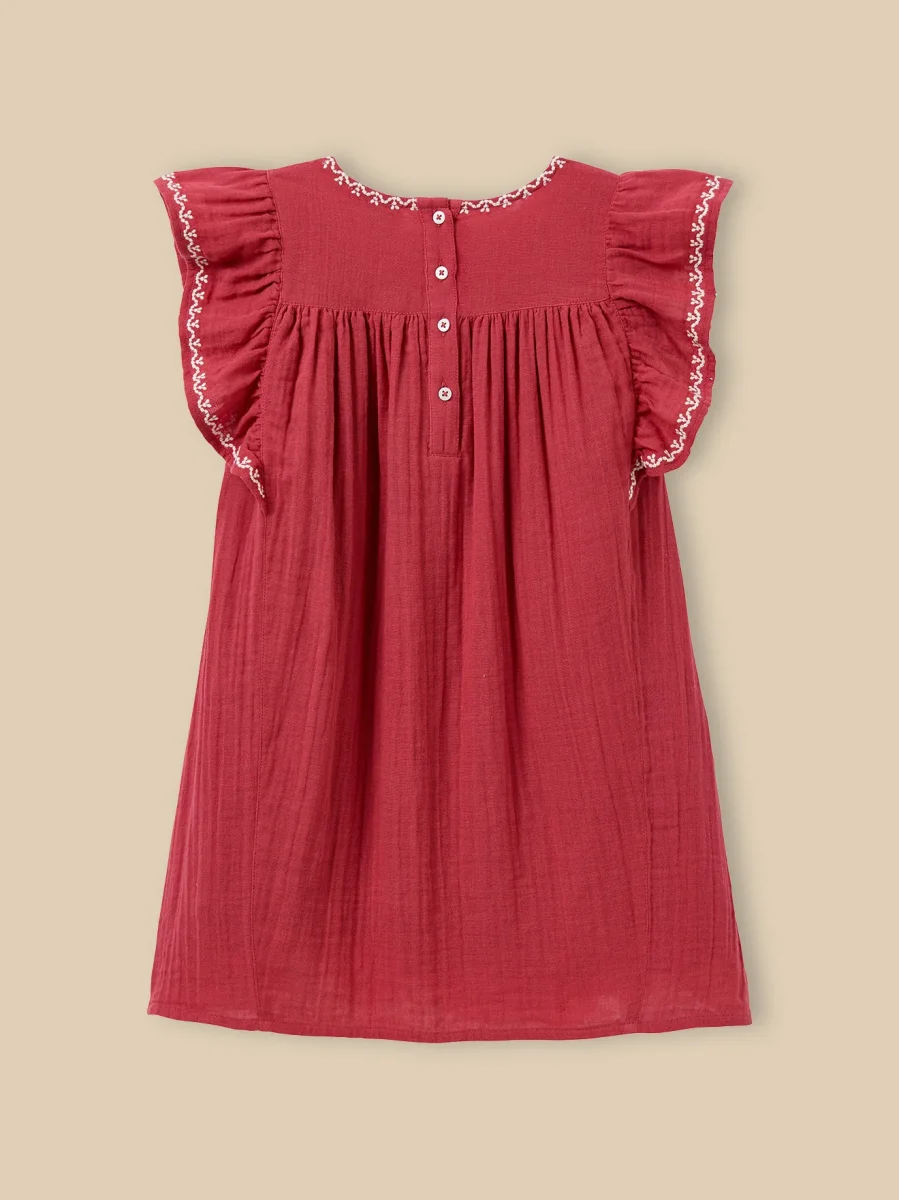 Chic et bohème à la fois, cette robe en gaze de coton se pare de broderies contrastées et de volants pour une touche raffinée.