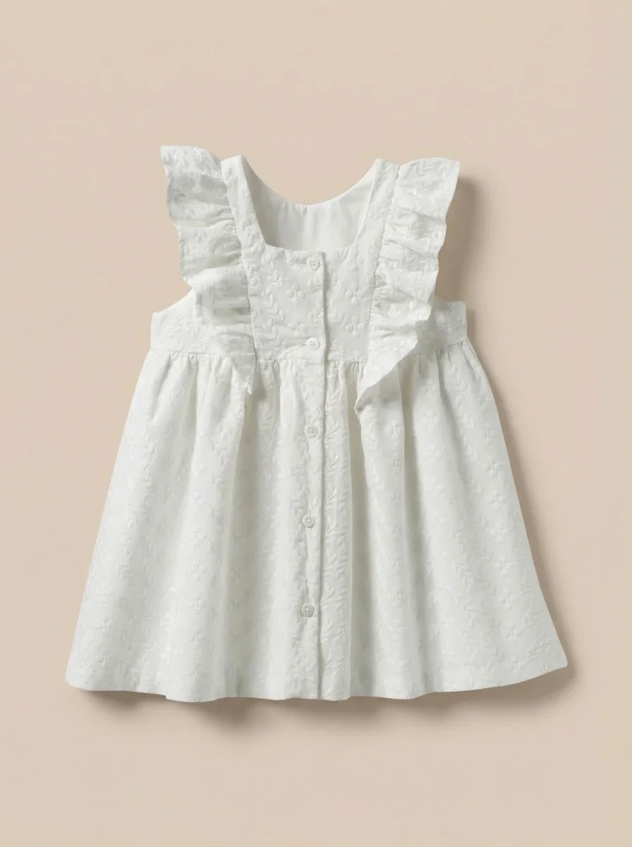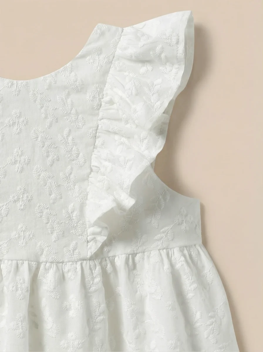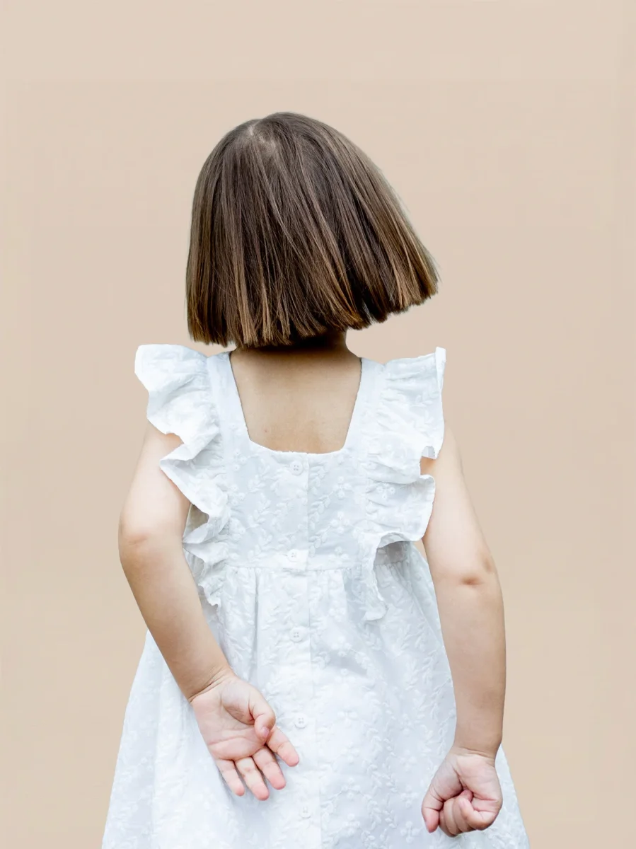 Une coupe estivale, des épis de blé brodés et des volants délicats… cette robe apporte un souffle d’été et de candeur dans les cortèges et cérémonies.