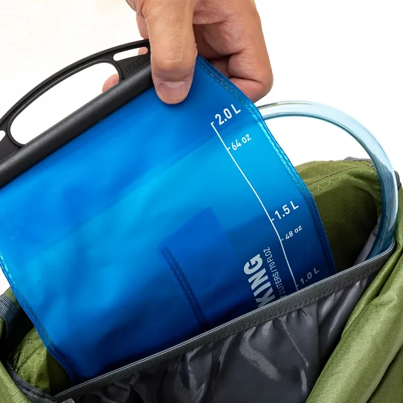 - Hydratation prête : sleeve interne 2–3 L et port tuyau guidé sur bretelle.