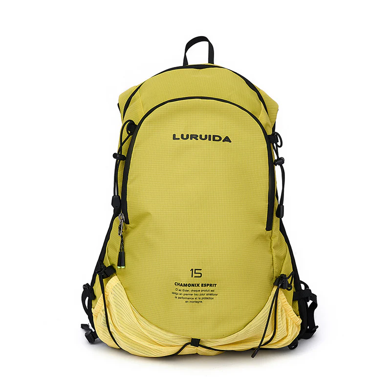 Avec une capacité utile inférieure à 20 L, optimisée autour de 15 L, le volume suffit pour coupe-vent, eau, petit snack et accessoires techniques. Les dimensions approximatives de 44 × 24 × 16 cm restent compatibles avec l’usage quotidien et le transport en cabine. Le poids demeure réduit, autour de 0,33 kg, ce qui en fait un sac agréable à porter sur la durée. Disponible en jaune vif, noir ou gris clair, il couvre aussi bien l’usage randonnée que le déplacement urbain.