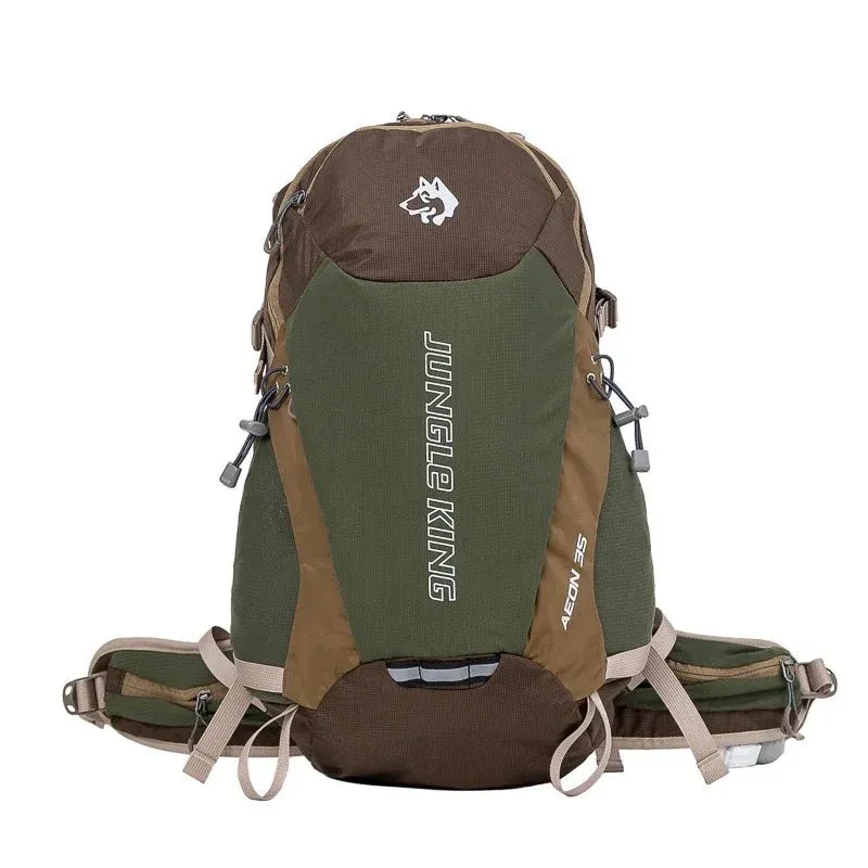 Sac à dos randonnée 35L robuste et léger. Conçu pour les sorties à la journée, le trekking léger et les activités outdoor, ce sac Jungle King 35L offre un portage stable, une protection fiable contre l’humidité et une organisation efficace du matériel.