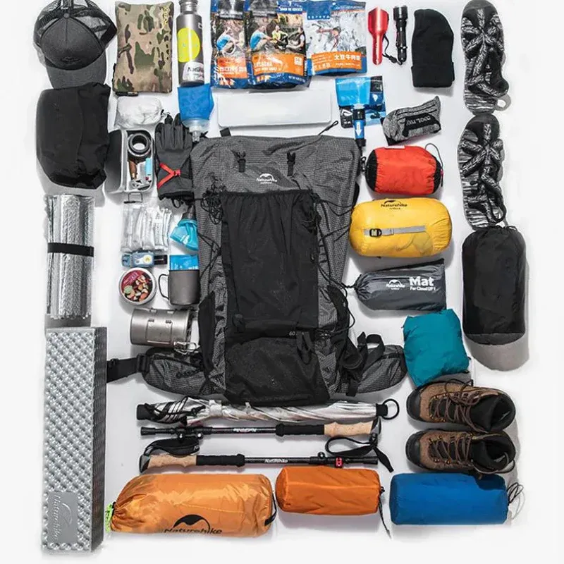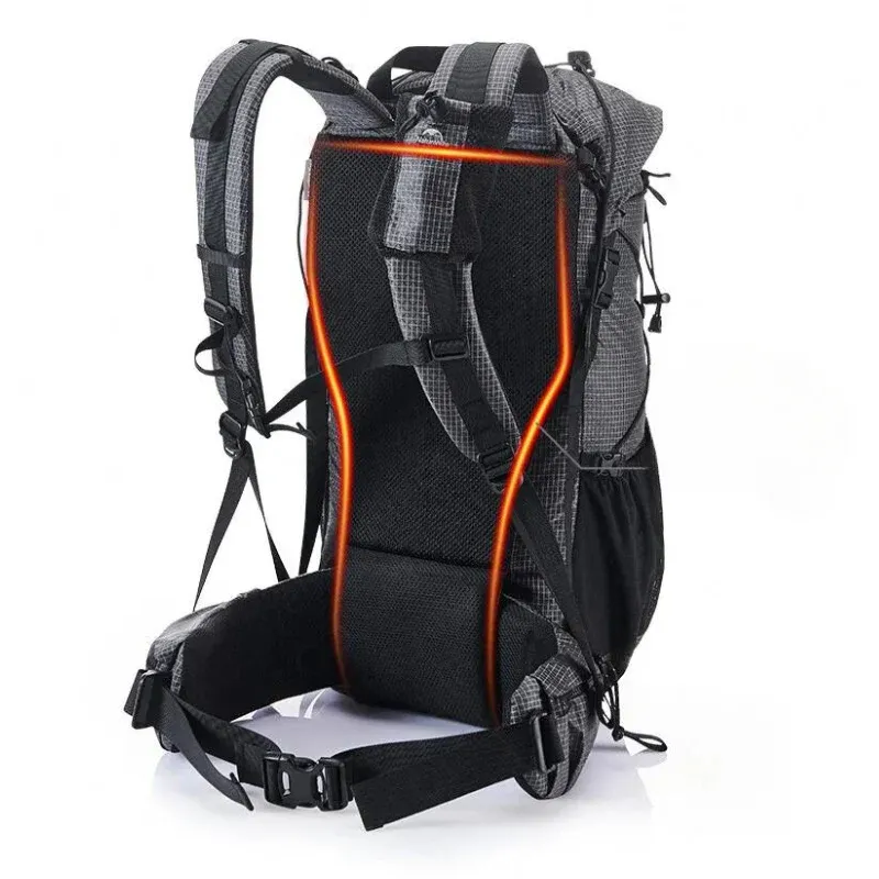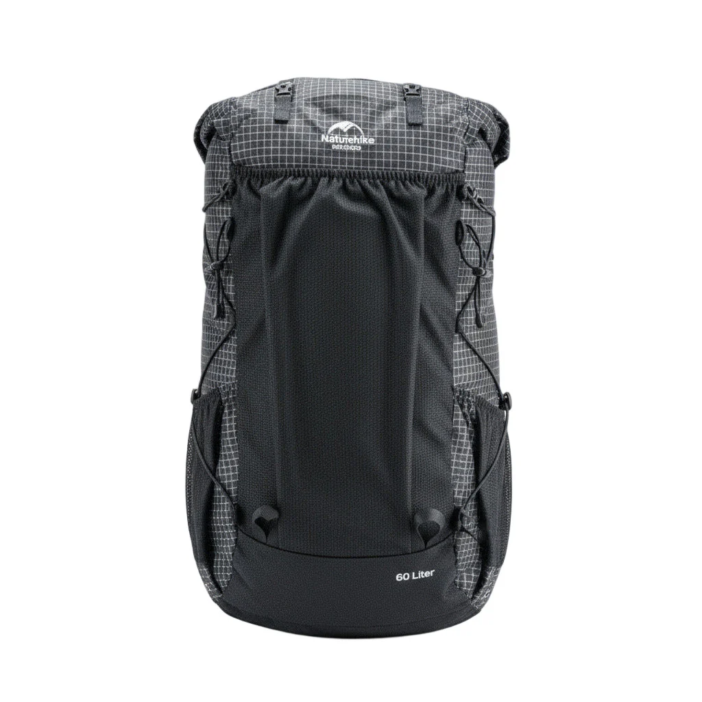 Sac à dos de randonnée 60+5 L léger et robuste. Conçu pour les treks de plusieurs jours, il combine armature aluminium, tissu nylon 420D renforcé UHMWPE et fermeture roll-top extensible pour protéger l’équipement par tous temps.