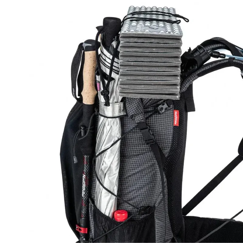 - Arrimage externe : sangles et cordage pour bâtons, tapis ou veste.