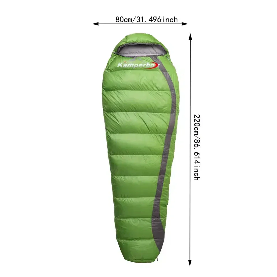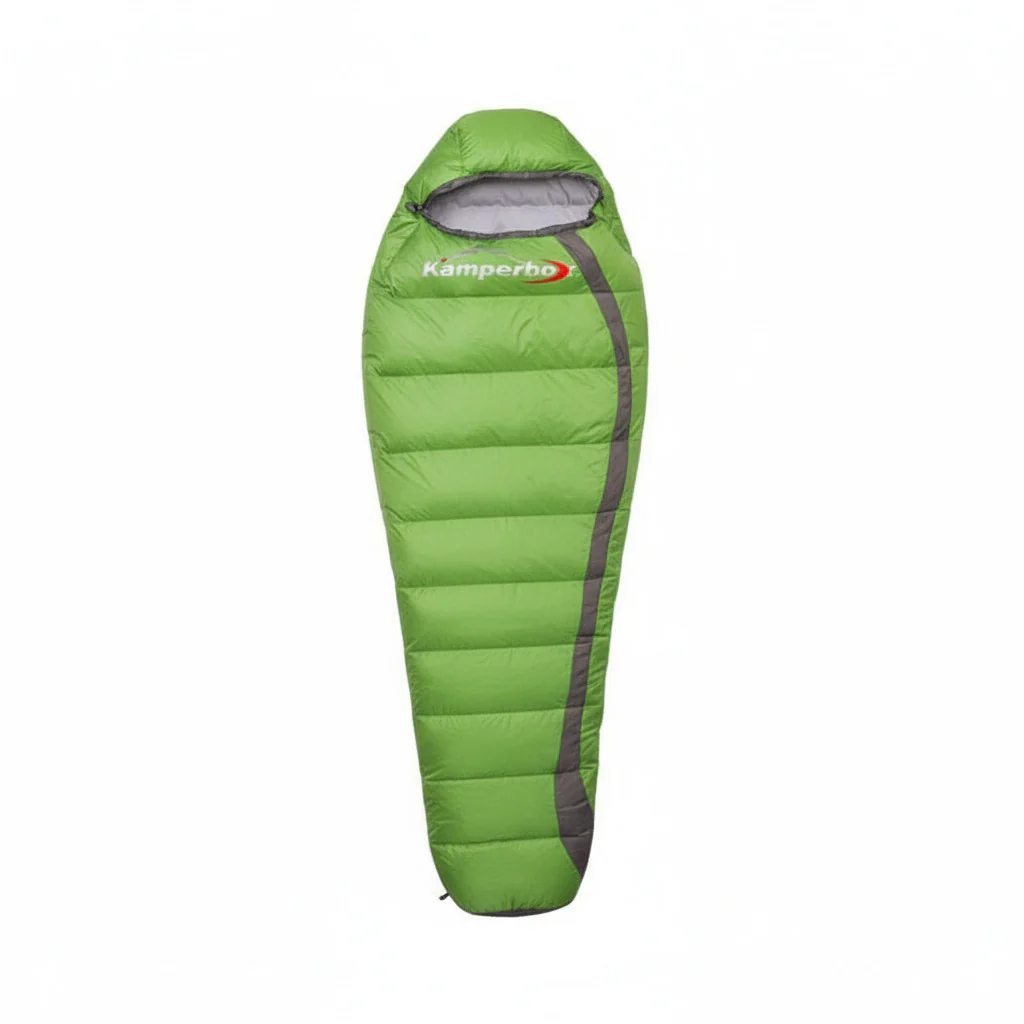 - Dimensions : 220 × 80 cm, coupe momie pour limiter les volumes d’air à chauffer.