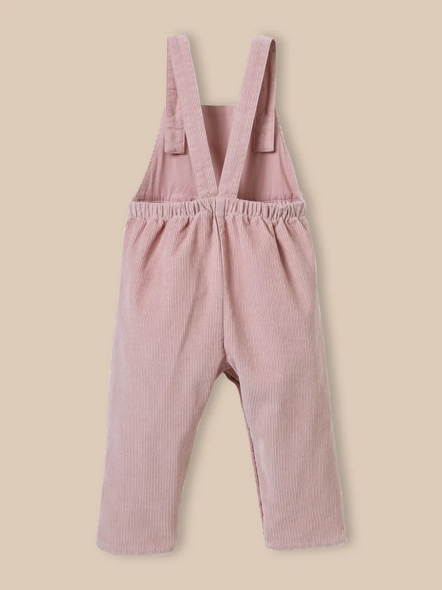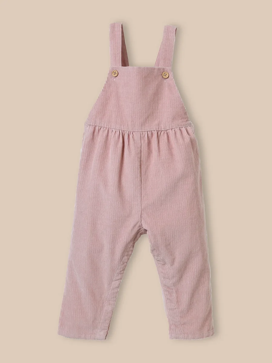 Tendrement rétro, cette salopette en velours séduit par sa teinte rose buvard, en accord avec l’univers délicat de bébé.