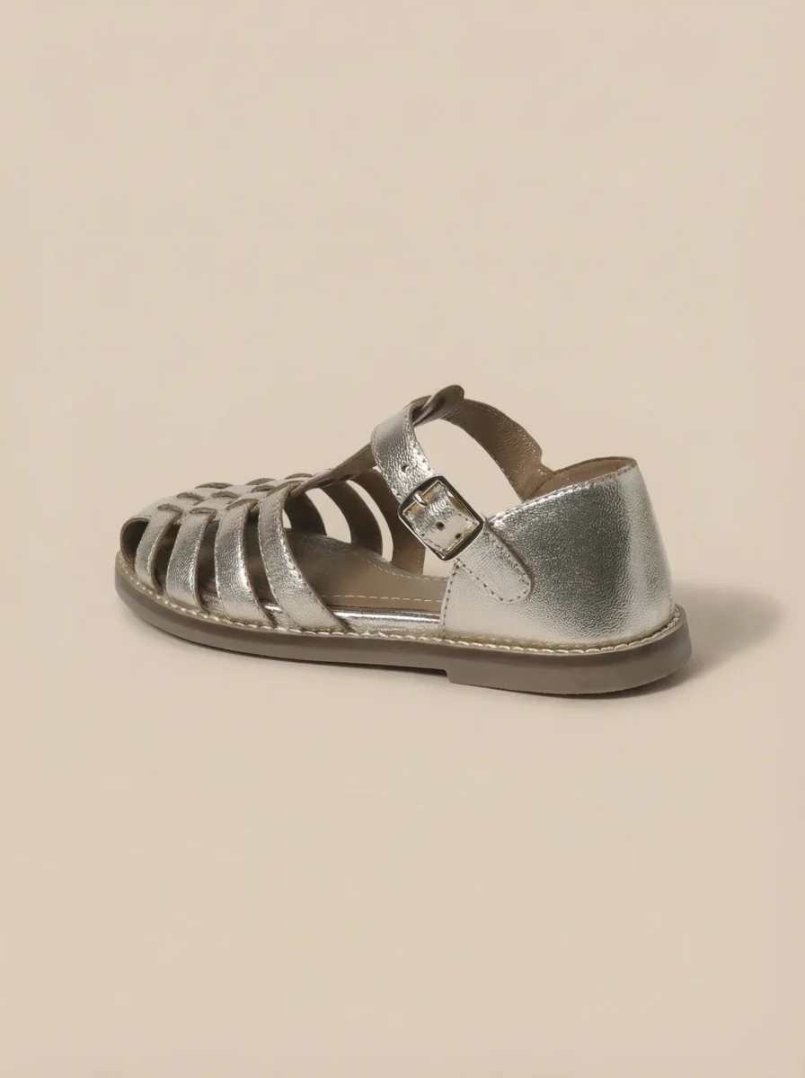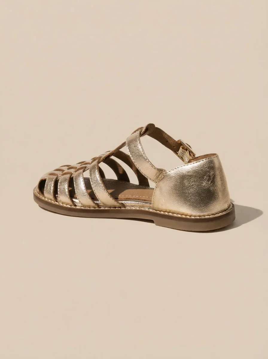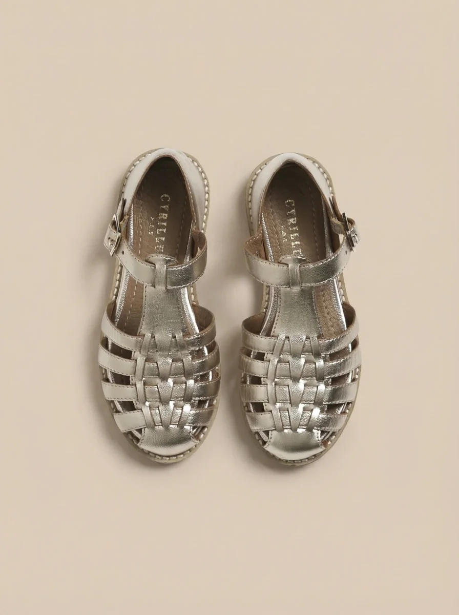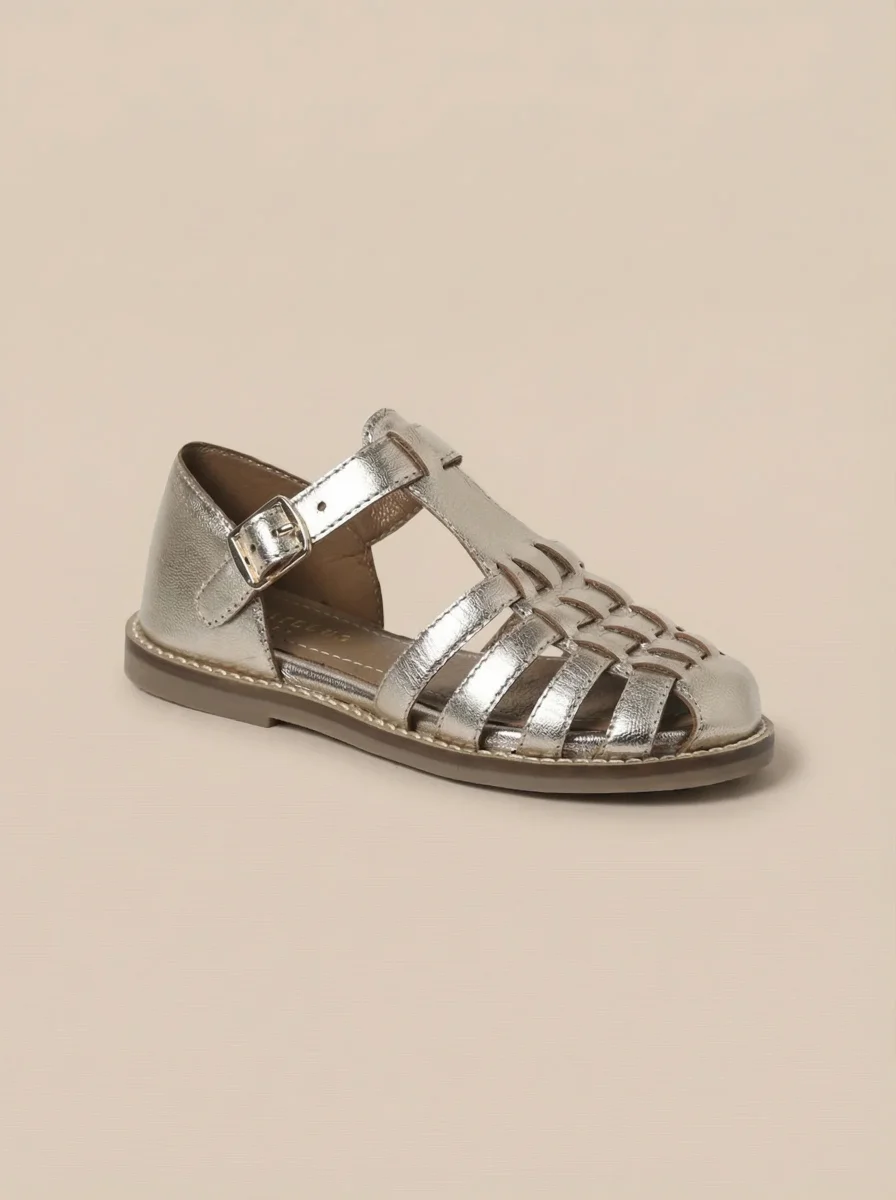 Réminiscence de notre enfance, cette sandale « fisher », est revisitée avec un cuir souple et irisé pour un look très actuel.