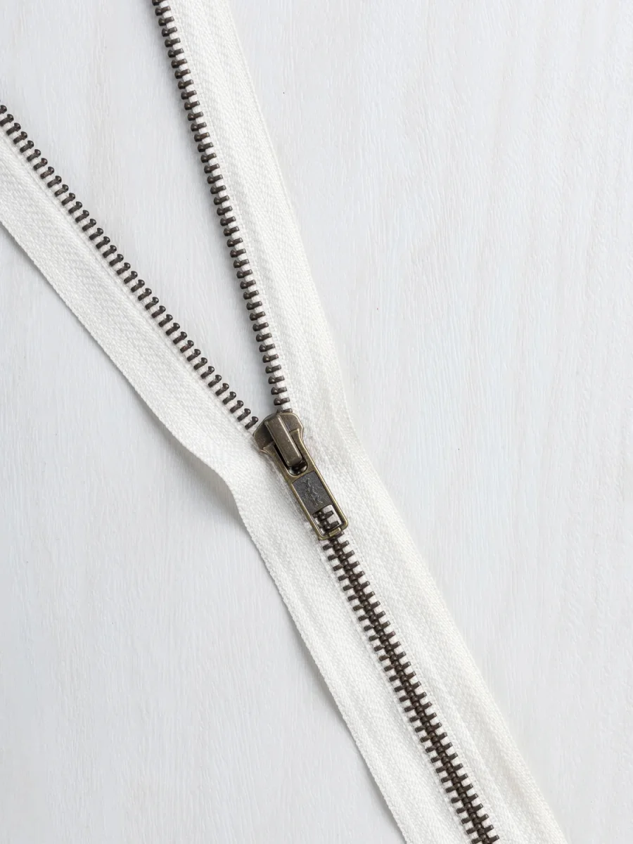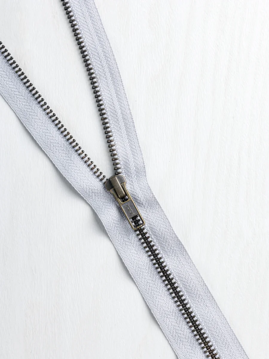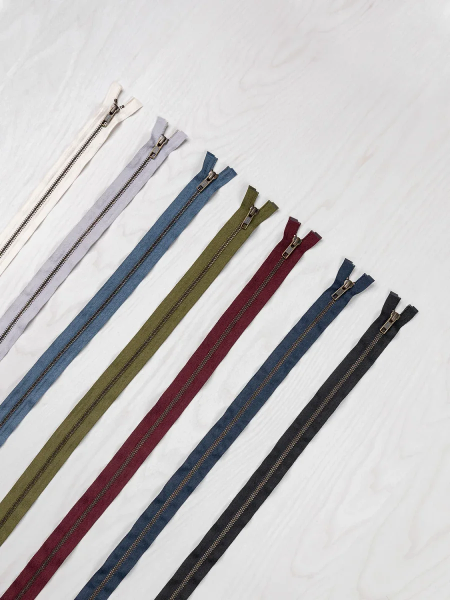 Perfect for outerwear of all shapes and sizes, this sturdy zipper is open-ended (i.e. will release you from your jacquard-based creation) and is available with various handsome colours of twill tape to anchor it, you can adjust the length as needed with a pair of pliers, some scissors, and a little know-how.
