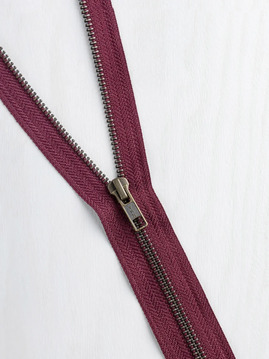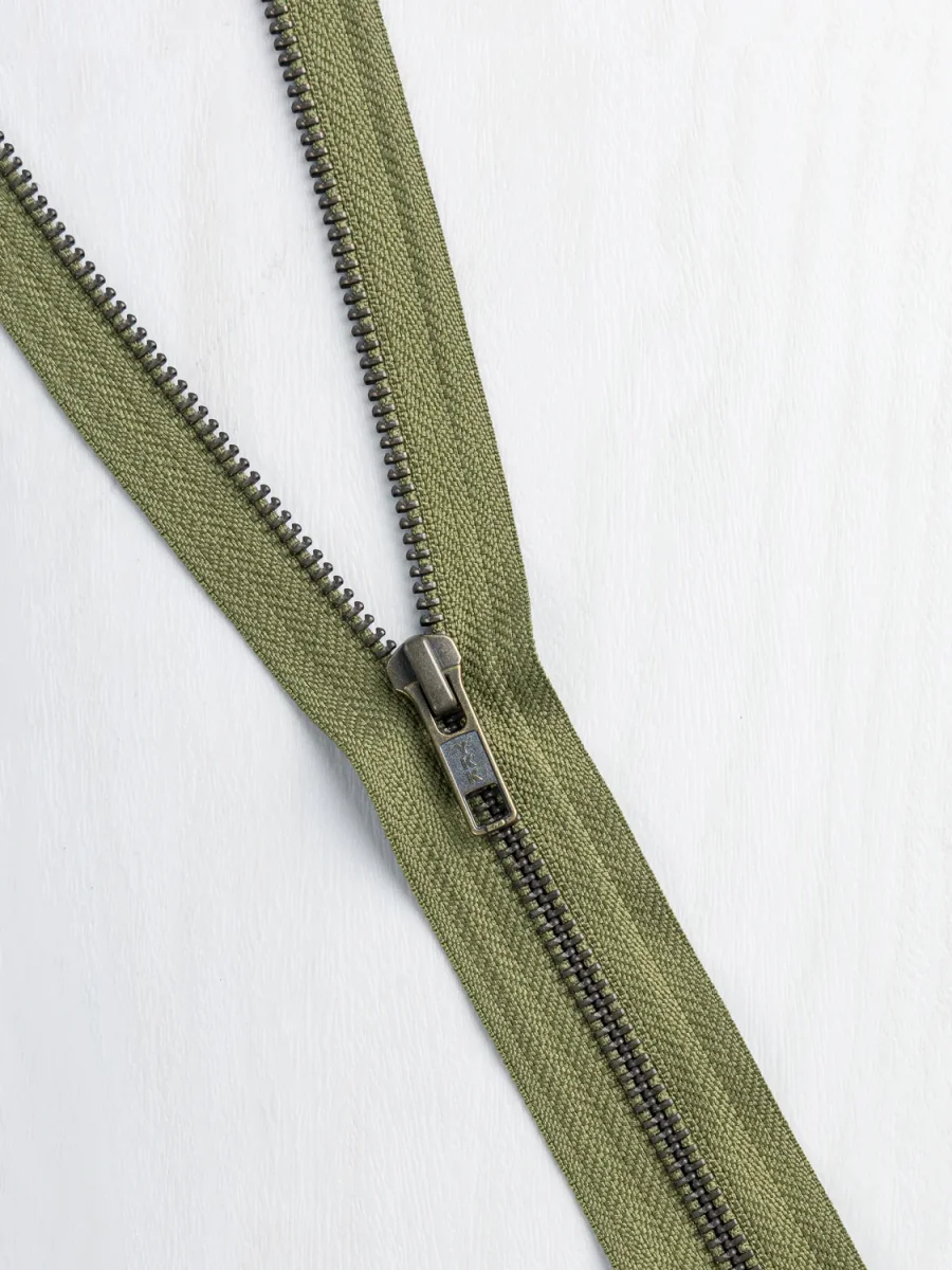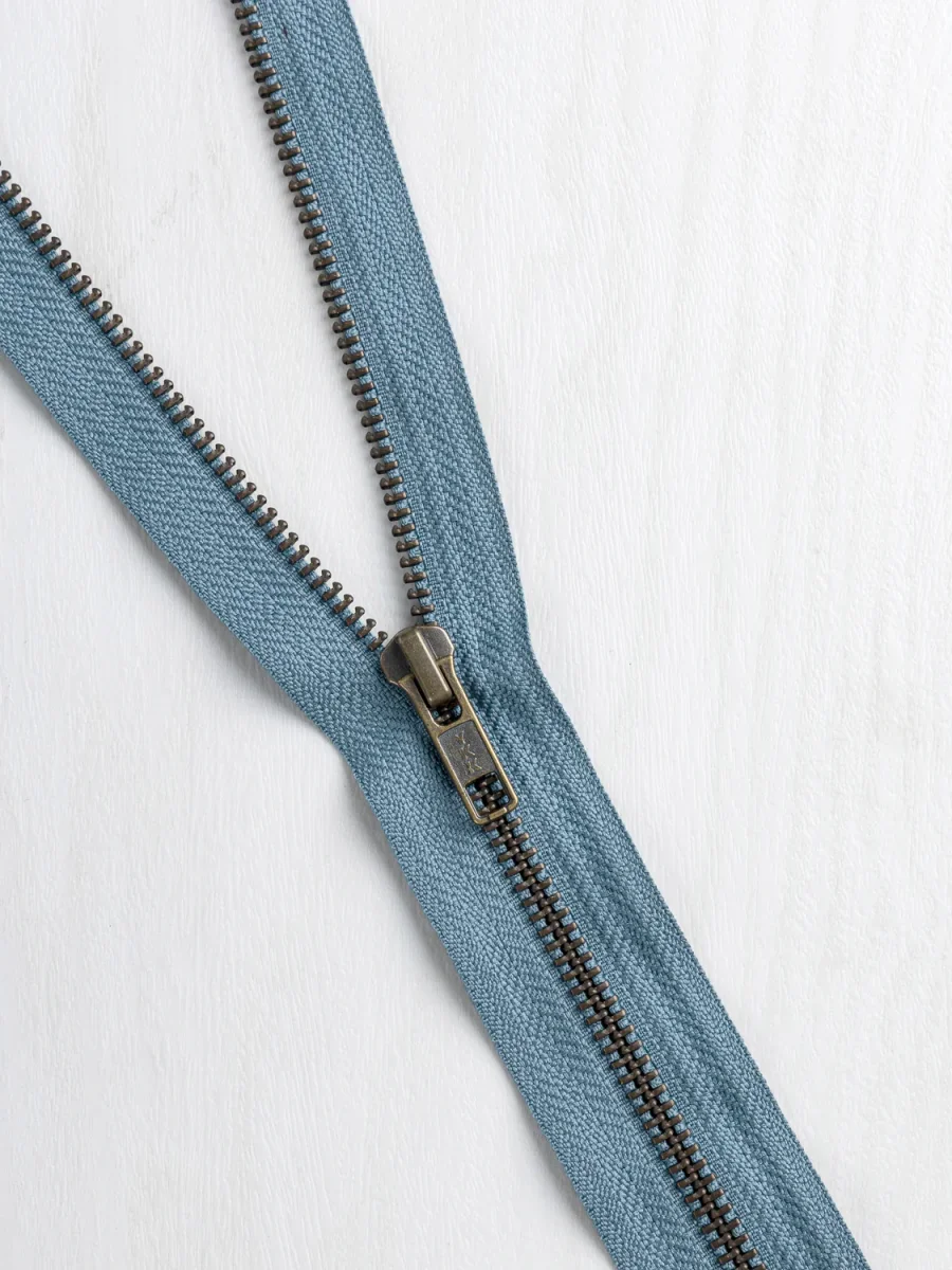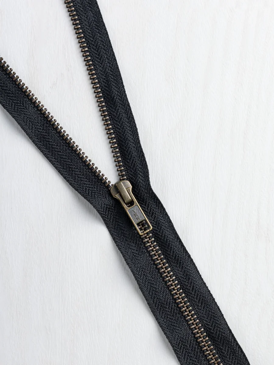 Perfect for outerwear of all shapes and sizes, this sturdy zipper is open-ended (i.e. will release you from your jacquard-based creation) and is available with various handsome colours of twill tape to anchor it, you can adjust the length as needed with a pair of pliers, some scissors, and a little know-how.