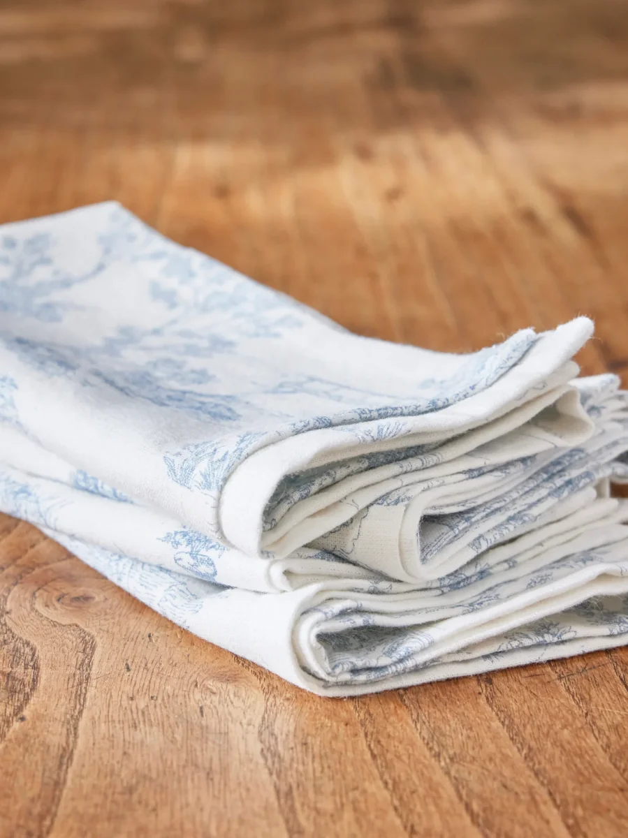 Serviette de table esprit jouy en coton tramé par lot de 4